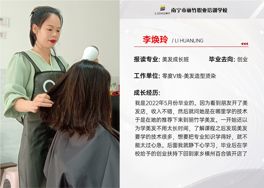 南寧美發(fā)創(chuàng)業(yè)、南寧美發(fā)創(chuàng)業(yè)發(fā)展:在南寧美發(fā)專業(yè)學校-麗竹學校的招生前臺,一場溫馨的見面會正在上演。22級美發(fā)全能班的方冬瑩,李煥玲,盧素豐,梁麗麗創(chuàng)業(yè)成功,感恩母校提供的學習平臺,感謝老師的專業(yè)教導。麗竹學校永遠是自己身后蕞溫暖的港灣,老師也是蕞強的后盾。而大家對麗竹學校,對老師的感恩之情,也將永遠延續(xù)下去。