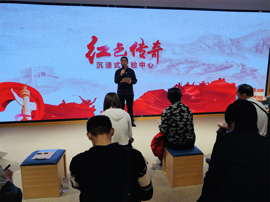 在麗竹學(xué)校黨支部書記王良友同志的帶領(lǐng)下,黨員代表李玲玲,入黨積極分子代表?xiàng)钛嗳A一行人先跟著大部隊(duì)來到了《紅色傳奇》》沉浸式體驗(yàn)中心。