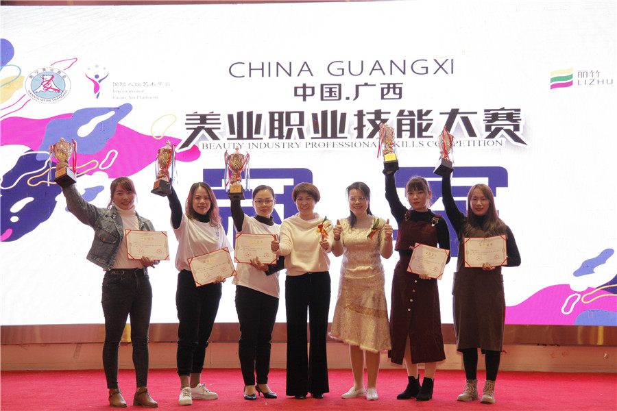 獲獎(jiǎng)名單:吳冠芹(美容)、吳秀妮(美發(fā))、蒙金妮(美甲)、趙小花(紋繡)盧艷芳(彩妝)