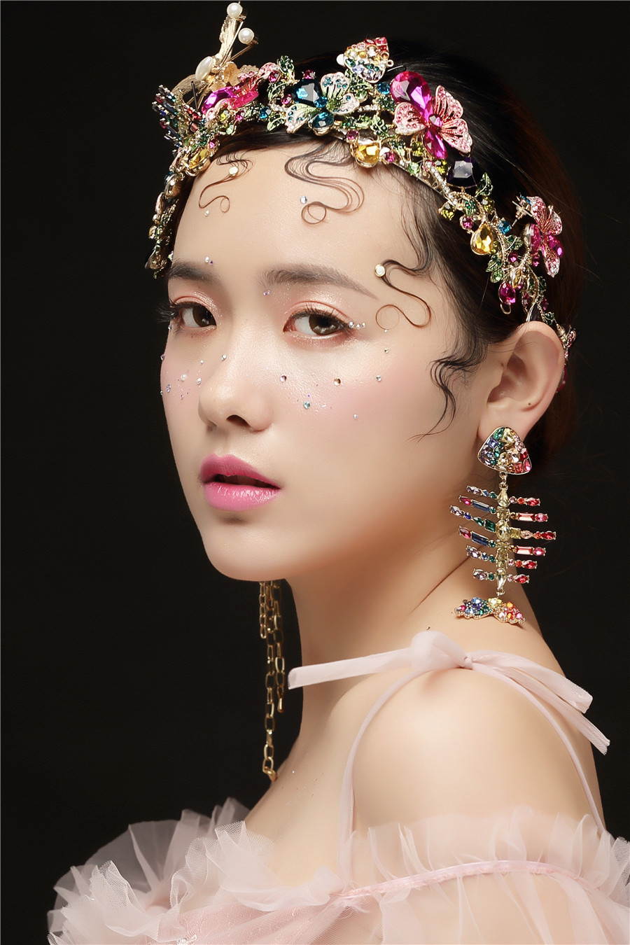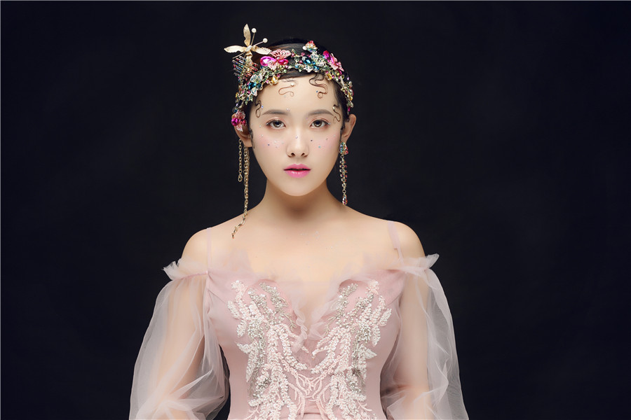 南寧化妝學(xué)校原創(chuàng)作品分享:美要流行于外表,更要浸透入骨,運用色彩創(chuàng)意,讓新娘曼妙靈氣,仿佛晨曦里落入人間的小仙女。