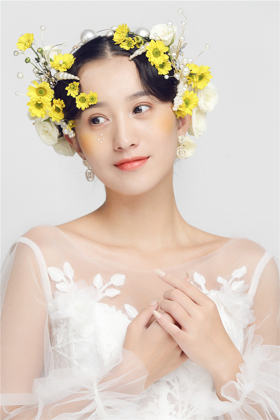 麗竹學(xué)校彩妝作品---森系鮮花造型:美得淡雅脫俗的花朵,縈繞在靈動的發(fā)絲上,花開半夏如詩如畫,驚艷了時(shí)光隧道,造就了一人一花一世界。
