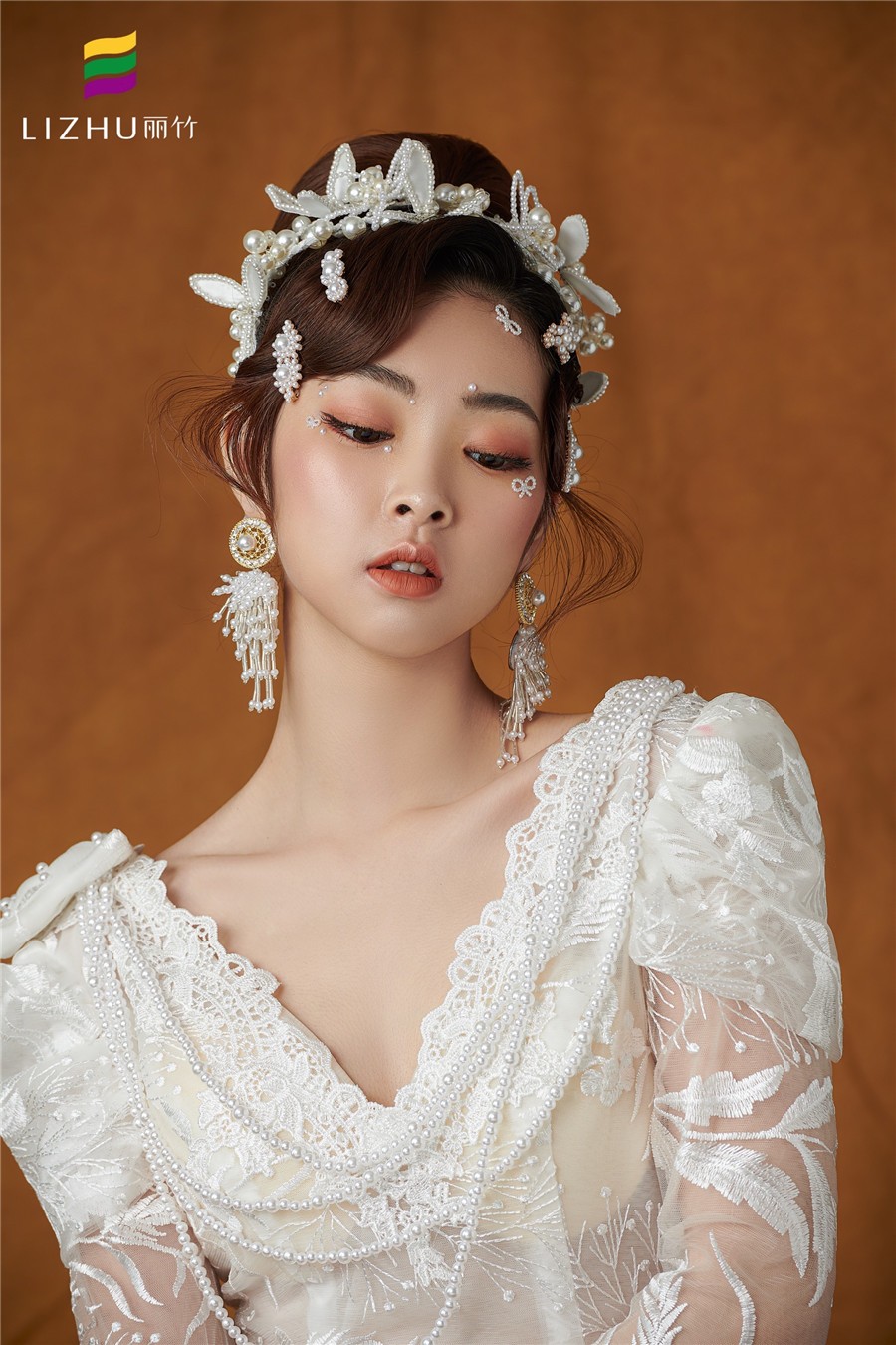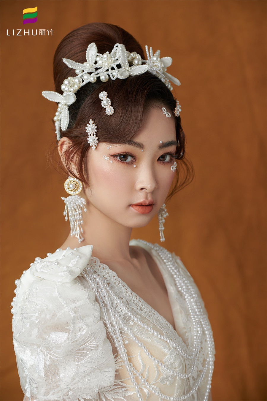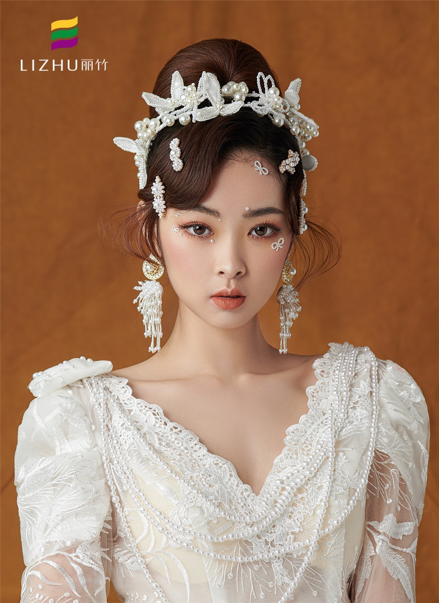 麗竹學(xué)校彩妝作品---輕奢復(fù)古珍珠妝容:復(fù)古簡(jiǎn)潔優(yōu)雅的盤(pán)發(fā),佩戴少女俏皮的頭飾,純白珍珠搭配的精致,展示出萬(wàn)種舊日風(fēng)情,使得微微一笑很傾城。