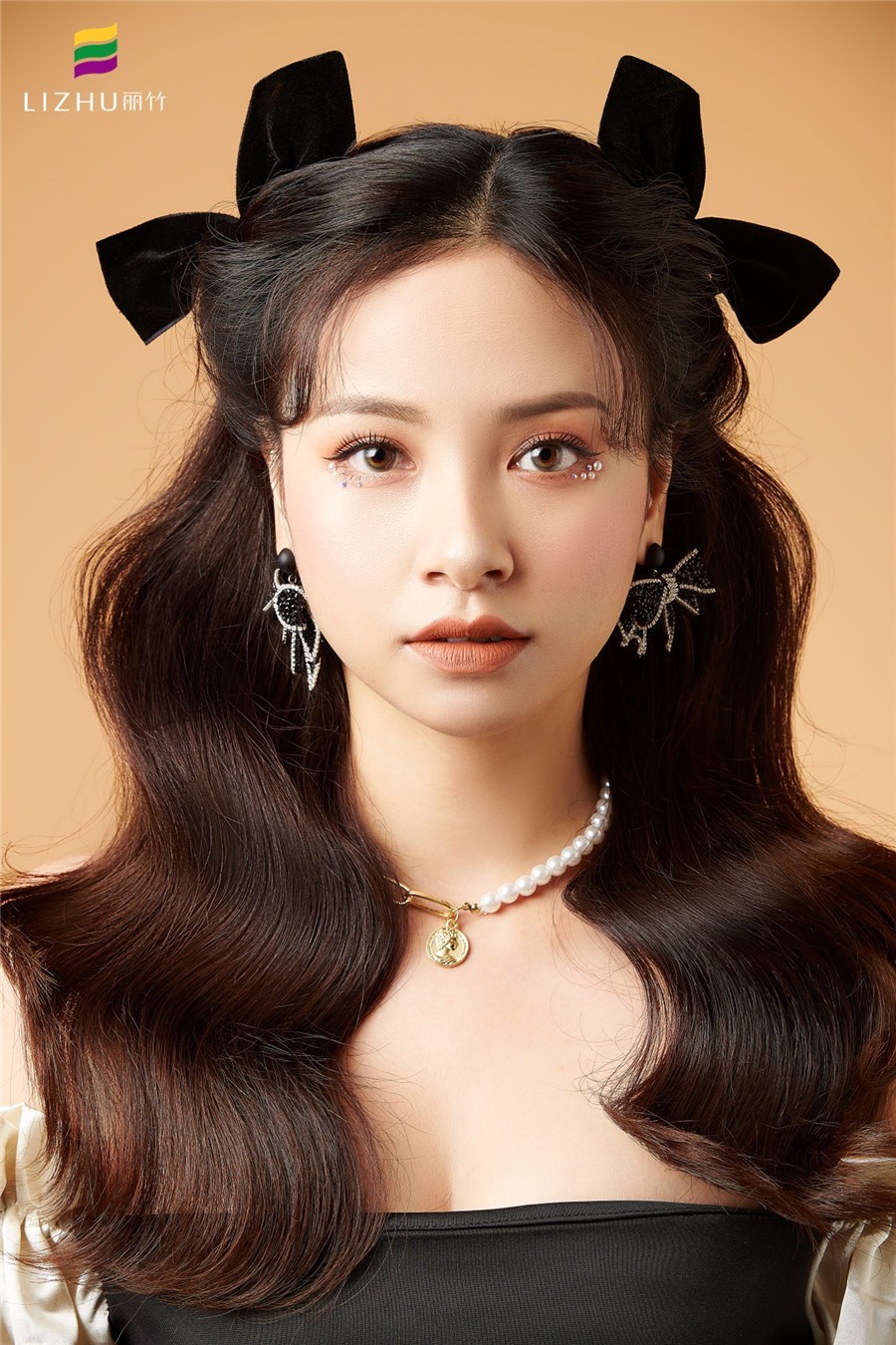 蝴蝶結(jié)發(fā)飾搭配紋理披發(fā)