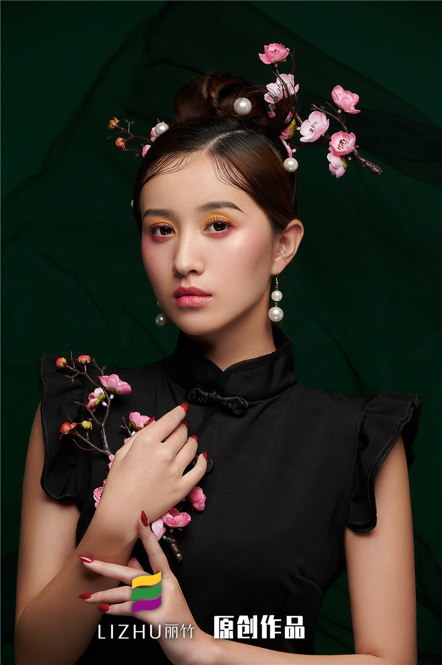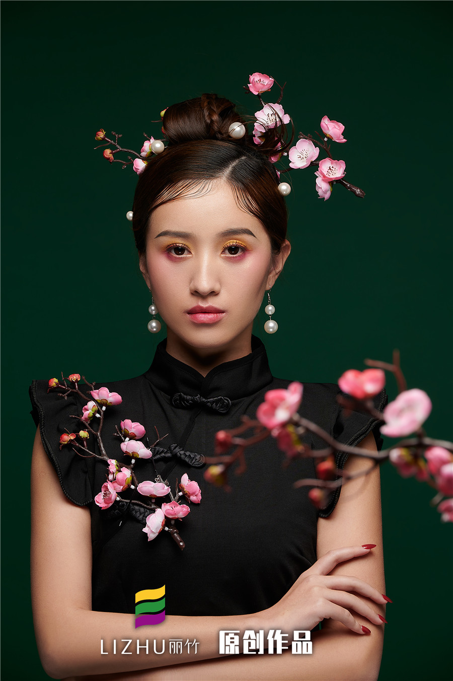 南寧化妝培訓:又颯又酷的造型,發(fā)絲間別一抹花香,添加眉眼里的柔美感覺,即使身穿高冷的黑旗袍,也讓人心生愛戀,難以忘懷。