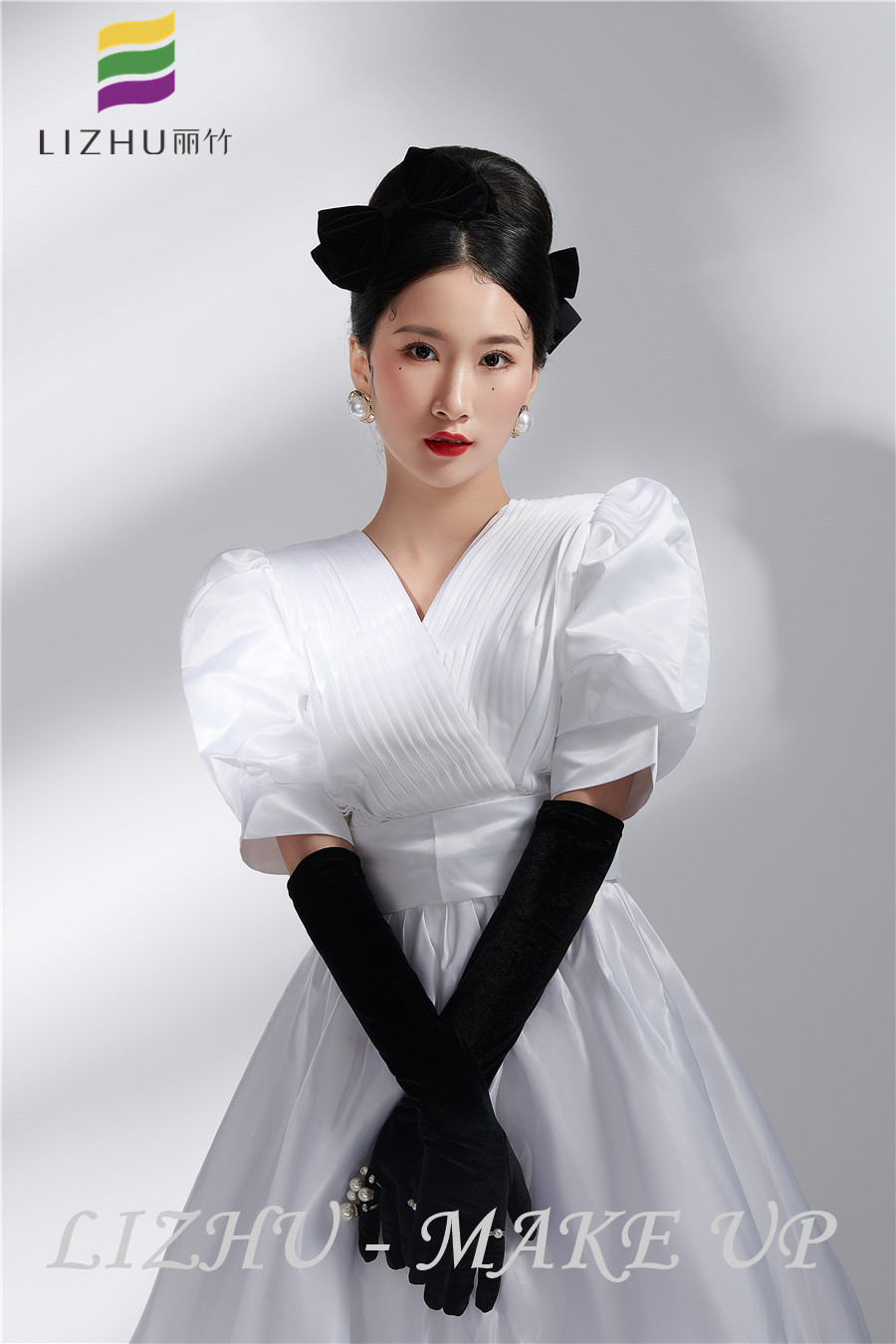 南寧彩妝培訓(xùn)機(jī)構(gòu)、南寧美妝造型學(xué)校(麗竹彩妝學(xué)校)作品---簡(jiǎn)約復(fù)古新娘造型:復(fù)古高雅的赫本發(fā)型,簡(jiǎn)約大氣的底妝配以美艷紅唇,圓潤(rùn)透亮珍珠耳飾點(diǎn)綴。盡顯法式的風(fēng)情,英倫的典雅。如果想知道南寧學(xué)彩妝哪家時(shí)尚?或南寧哪里可以學(xué)新娘妝?相信看完麗竹學(xué)校的彩妝作品,你心中定能找到答案!