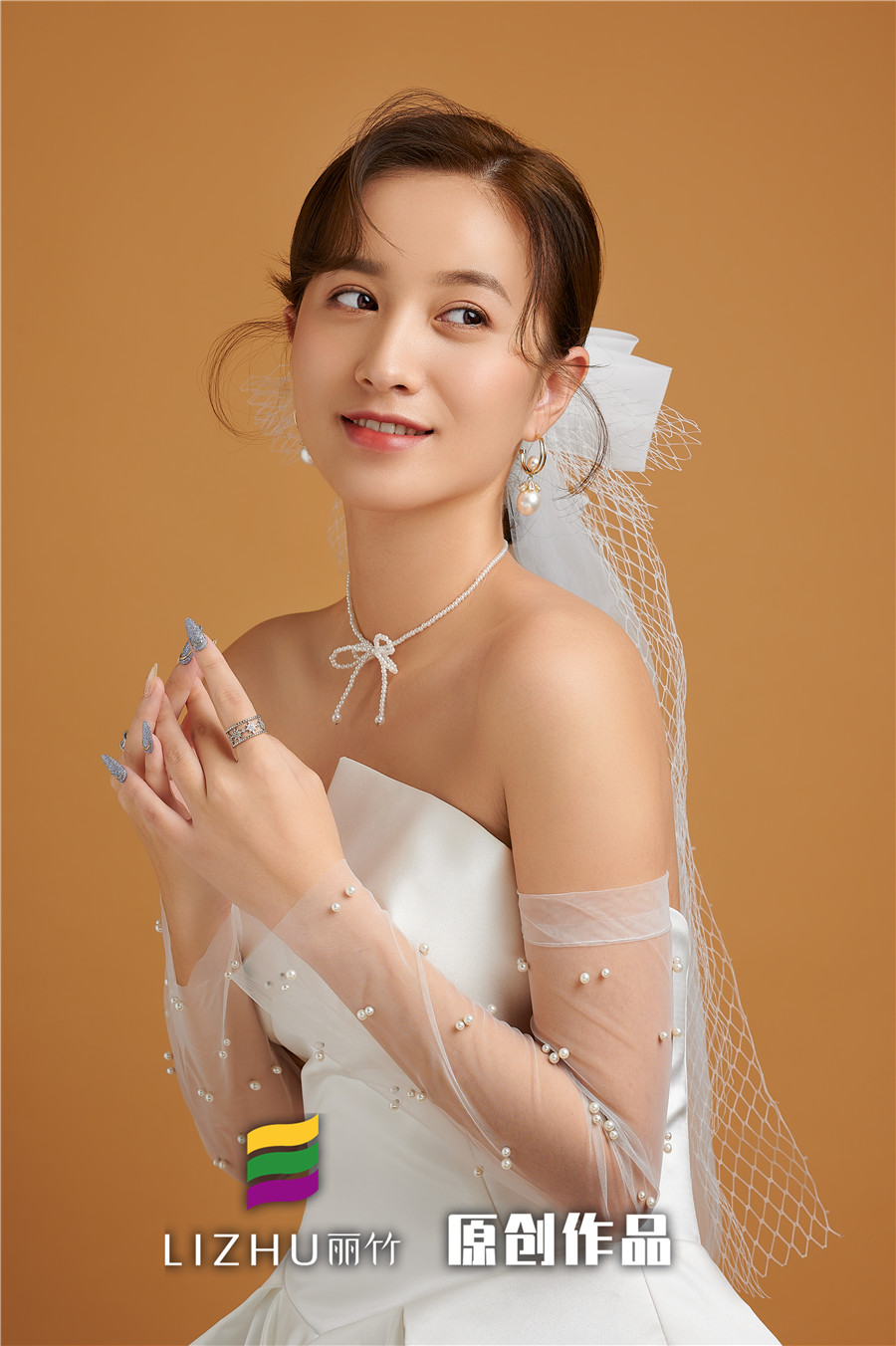 麗竹學(xué)校彩妝作品---簡約韓式新娘造型:自然輕薄的妝面似有似無,配上清新靈動的簡約盤發(fā),點綴潔白無暇的珍珠飾品,搭配白色綢緞面料的禮服,凸顯“人淡如菊”的氣質(zhì)。