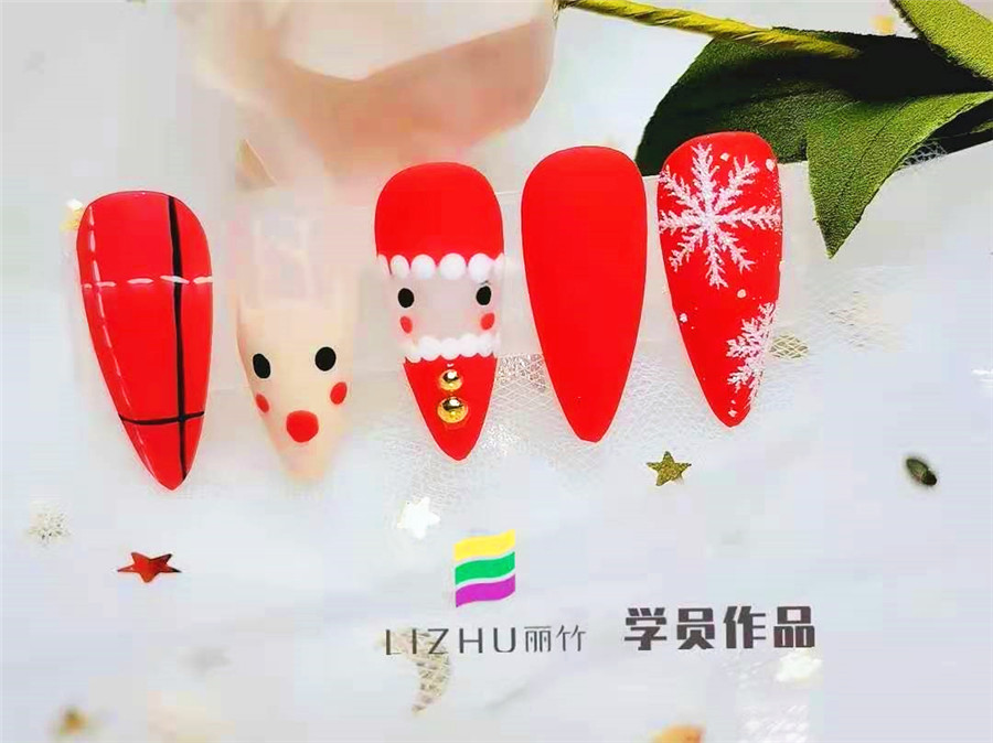 南寧美甲培訓(xùn)學(xué)校分享:“叮叮當(dāng),叮叮當(dāng), 鈴兒響叮當(dāng)”伴隨著歌曲,圣誕節(jié)也即將到來,小仙女們的美甲也是時(shí)候換上一個(gè)與節(jié)日相符的美甲款式了。下面,就看看南寧排行前十美甲學(xué)校(麗竹美甲學(xué)校)學(xué)員們創(chuàng)作的圣誕美甲作品吧!