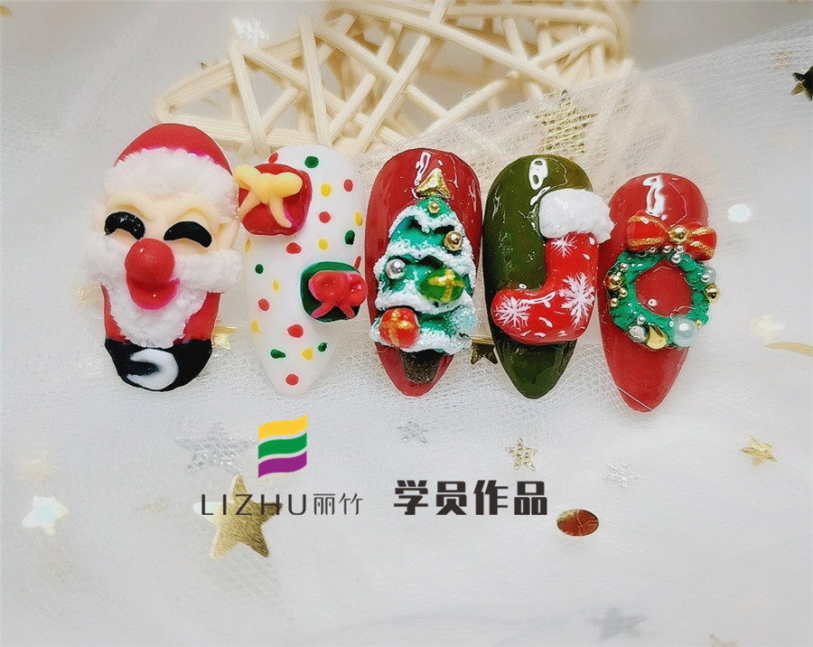 南寧美甲學校分享:綠色和紅色,雪花和襪子,老人和松樹……這些都是圣誕節(jié)到來的標志!為了將這些充滿圣誕元素的物件和人物放在指甲上,廣西正規(guī)美甲培訓學校(麗竹美甲學校)的學員們繪制了一些列的美甲作品,現(xiàn)在就來看看有沒有你喜歡的美甲款式吧!