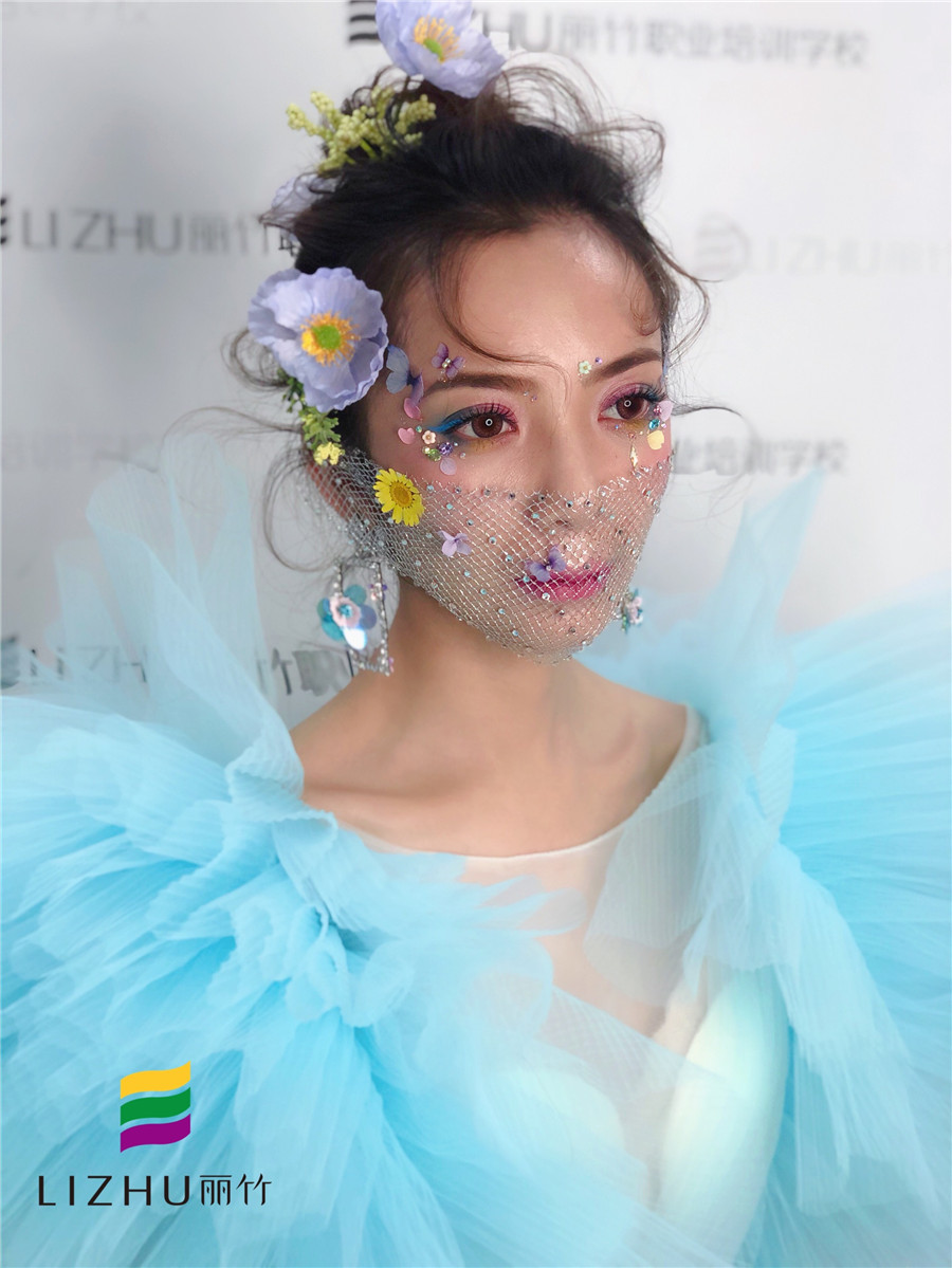 麗竹學(xué)校彩妝作品:鮮花面紗新娘造型:鮮花色彩明亮的精致妝容,打造溫潤(rùn)柔軟的清新格調(diào),佩戴不同的面紗點(diǎn)綴裝飾,閃耀著璀璨的光芒,讓新娘造型更加的唯美浪漫。