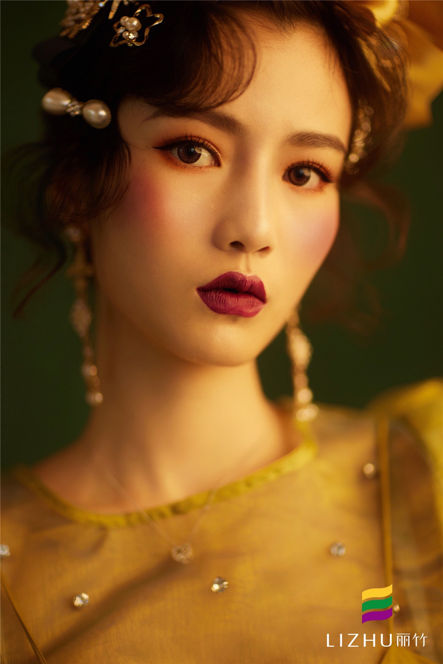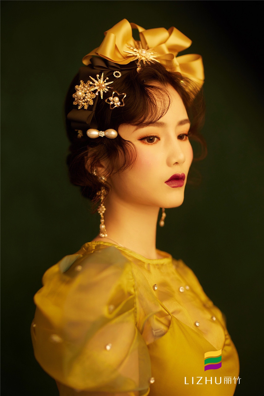 油畫妝容造型:復古手推波營造的優(yōu)雅感,佩戴金光亮閃的珍珠頭飾,極具張力的色系妝容打造,營造出了古典優(yōu)雅韻味,又不可抗拒的文藝氣息,如油畫里走出來的女王。