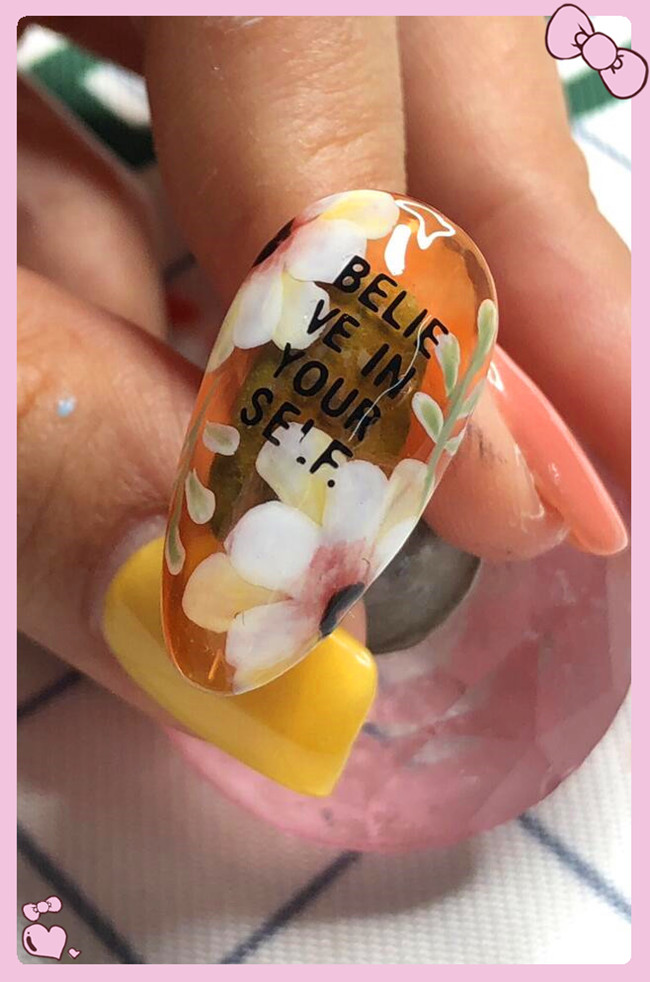 廣西美甲學(xué)校作品分享:手繪花朵美甲