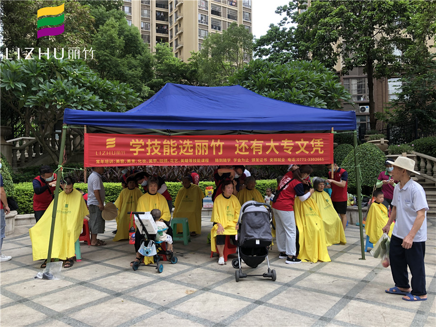 作為廣西專業(yè)美發(fā)培訓學校,麗竹美發(fā)學校在具備這些因素的同時,還堅持每周都帶學員們外出實踐!現(xiàn)在和我們一起看看本周學員們都去了哪些小區(qū)義務剪發(fā)?又為那些人解決了“頭”等大事吧!