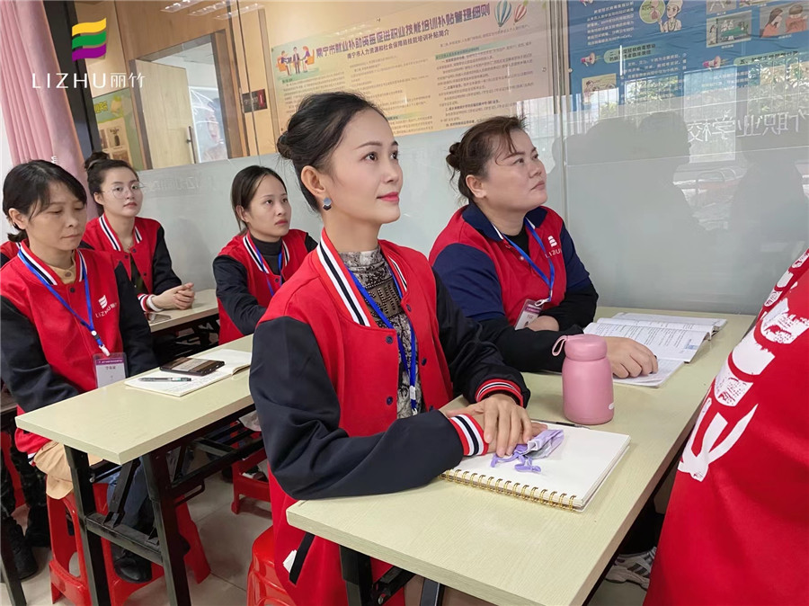 廣西美容學(xué)員為與韋老師進(jìn)行課堂互動(dòng)