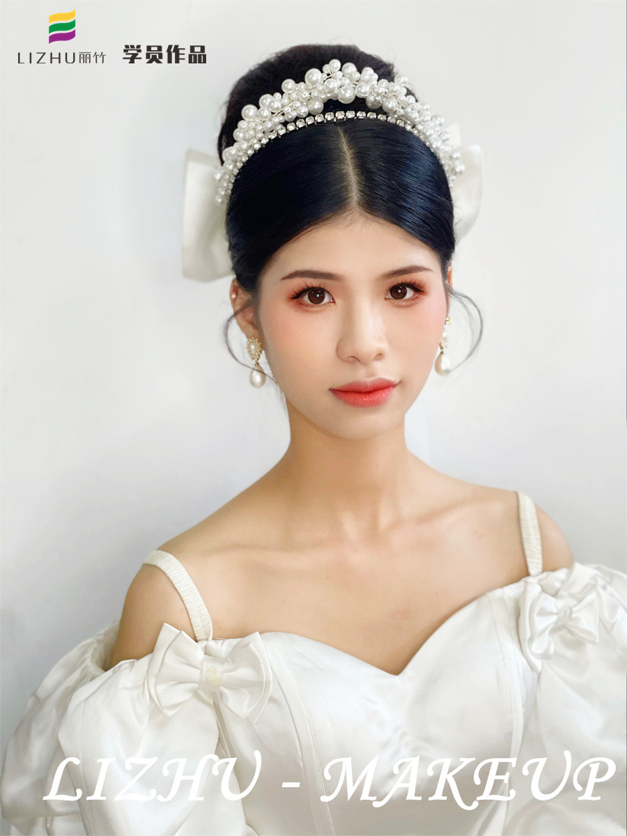 時尚新娘系列圖片、廣西學新娘妝分享:每次看到新娘子說自己今天的妝容花了好幾個小時才完成,雖然很漂亮,但也真的是很累。于是,很多人就會覺得想要畫好新娘妝并非易事,都想知道廣西學新娘妝要多久?在回答這個問題前,廣西南寧化妝學校-麗竹彩妝學校想邀請你看看零基礎學新娘妝的學員,通過2個月的時間學習成果。