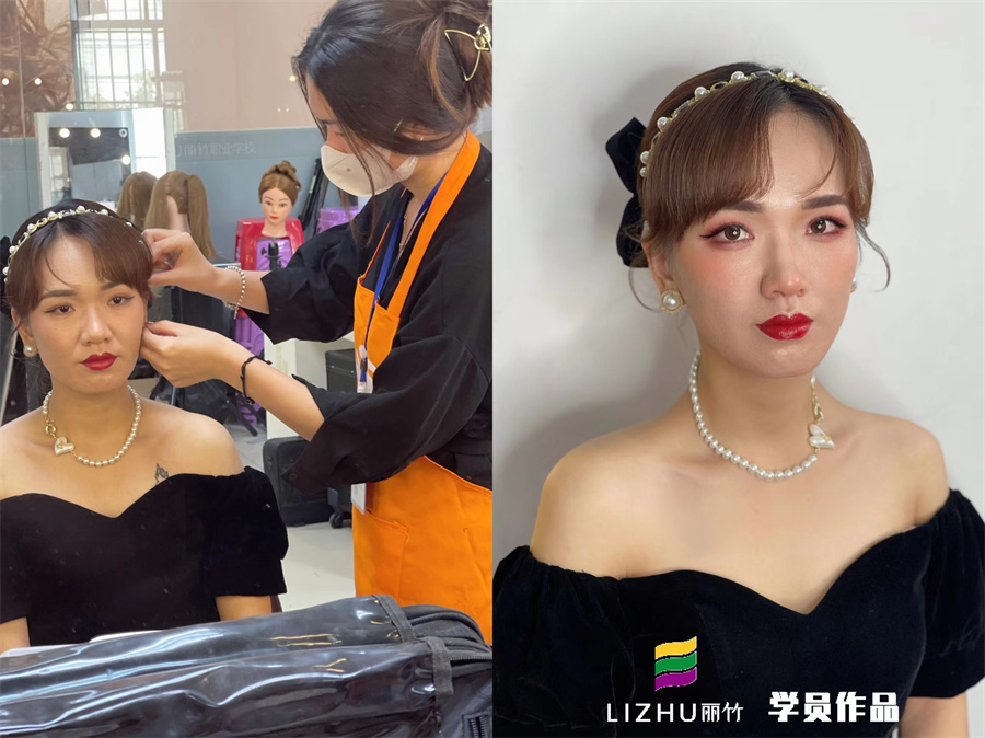 廣西學(xué)美妝、廣西美妝培訓(xùn)班分享:每次進(jìn)行一款新妝容造型的學(xué)習(xí),作為廣西專業(yè)美妝學(xué)校(麗竹美妝學(xué)校)都會(huì)對(duì)學(xué)員們進(jìn)行整體造型的考核??己说膬?nèi)容不僅要看妝面的打造,發(fā)型的設(shè)計(jì),還要看服飾配飾搭配度。我們隨機(jī)挑選了3名學(xué)員的作品,一起來(lái)看看吧!