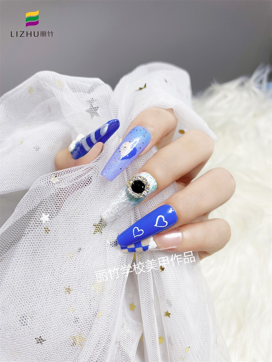南寧美甲學(xué)排行榜分享:雖然很多人都喜歡做美甲,但卻很少有人愿意做藍色系的美甲。但是南寧專業(yè)美甲培訓(xùn)學(xué)校(麗竹專業(yè)美甲學(xué)校)今天就為大家推薦一款深藍色西美甲。