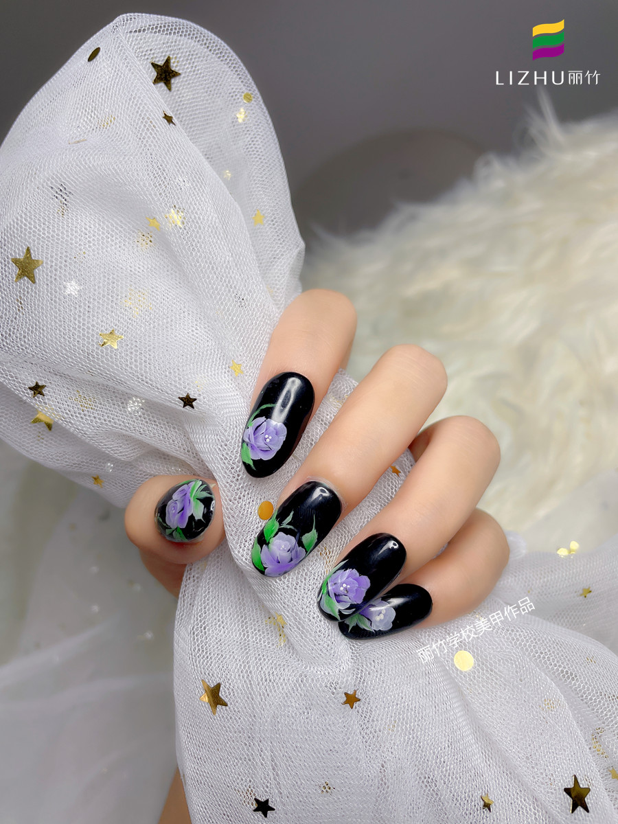 廣西美甲培訓(xùn)專業(yè)-麗竹學(xué)校美甲專業(yè)作品:手繪玫瑰花美甲