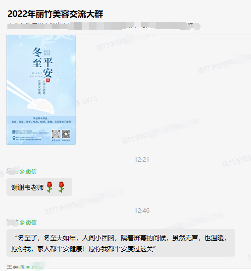 南寧美容美發(fā)學(xué)校、南寧化妝美甲職業(yè)培訓(xùn)分享:寒風(fēng)襲來,陽光至。時光駐足冬至,祝福隨風(fēng)而至。感謝同學(xué)們的冬至祝福