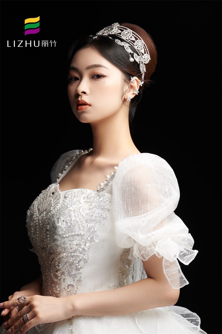 麗竹化妝盤札發(fā)造型班作品---“赫本頭”發(fā)型:做赫本頭頭的高發(fā)髻時,比較合適的位置是在下頜的延長線上。發(fā)髻的大小也要根據(jù)臉型的大小來決定,切勿過大或過小,以免顯得比例不平衡。佩戴飾品的位置居中,這樣看起來才能使整個發(fā)型更加高貴和典雅!