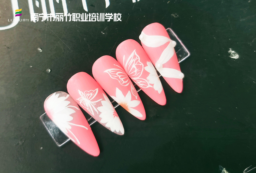 麗竹美甲速成班學(xué)員作品---玉蘭花美甲