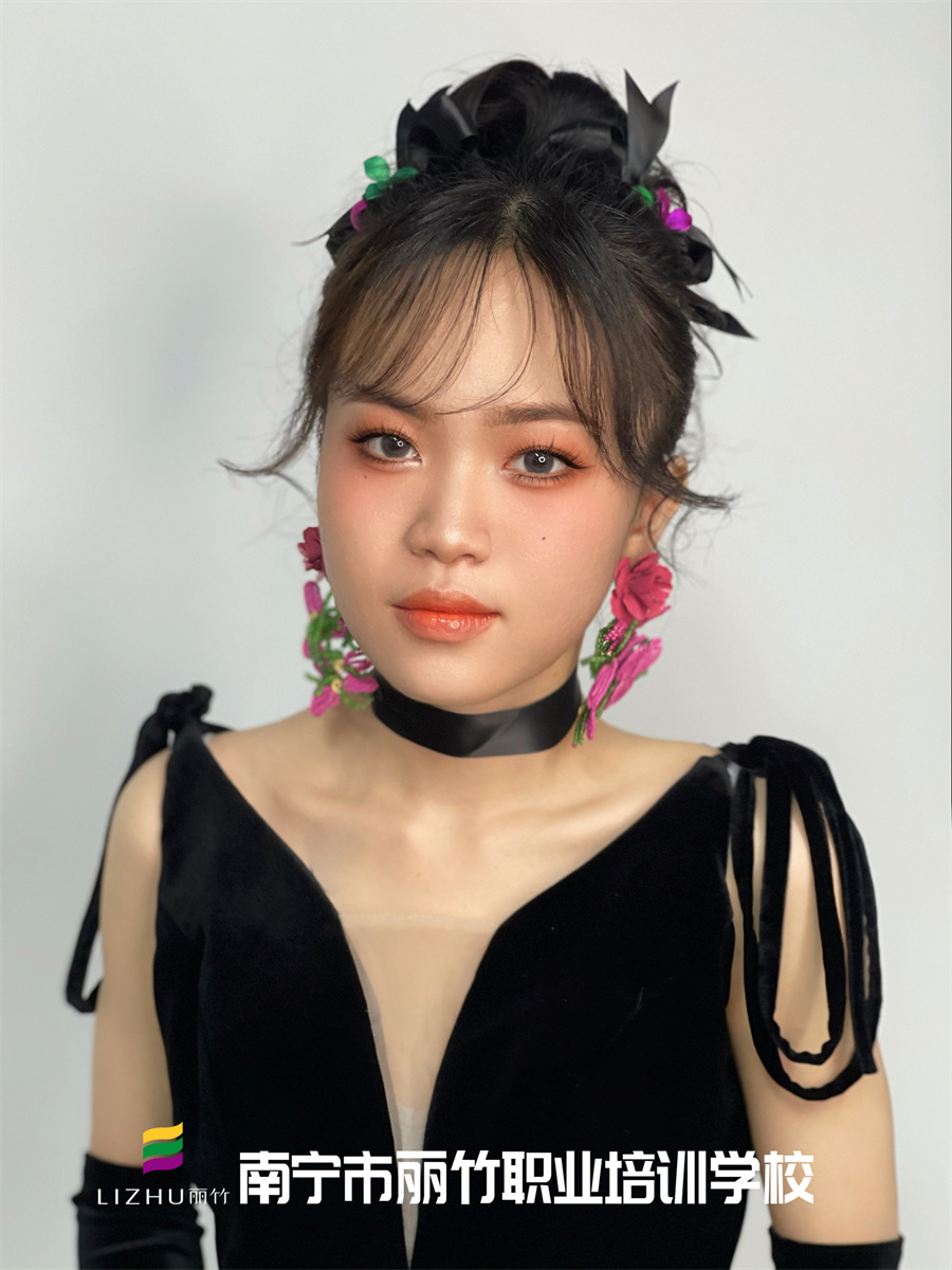 南寧化妝學(xué)校推薦、南寧化妝彩妝造型學(xué)校作品---復(fù)古禮服造型:元氣滿滿的自然妝容,復(fù)古氣質(zhì)絲絨長裙,優(yōu)雅迷人又不失氣質(zhì),讓經(jīng)典優(yōu)雅美出新復(fù)古。想在南寧學(xué)化妝,想知道南寧哪里可以學(xué)化妝?想知道南寧化妝學(xué)校哪家環(huán)境好?麗竹學(xué)?;瘖y專業(yè)大師授課,手把手輔導(dǎo),技術(shù)作品潮流時尚有個性,歡迎到校參觀,進(jìn)班試聽,滿意之后在報名!