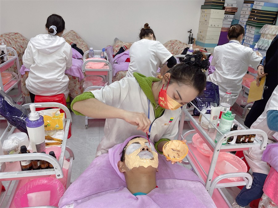 南寧學(xué)面部皮膚管理、南寧美容培訓(xùn)面部護(hù)膚:提起面部補(bǔ)水,想必大家都會選擇通過敷面膜去給肌膚補(bǔ)充水份和營養(yǎng)。其中,相對于其他類型的面膜來說,敷軟膜粉清潔和補(bǔ)水效果則較為明顯。 而現(xiàn)在南寧美容皮膚管理學(xué)校(麗竹皮膚管理全科班)的同學(xué)們正在進(jìn)行敷軟膜粉的真人實操練習(xí),就讓我們?nèi)ヂ犅牽捶筌浤し鄣暮锰幇桑?br/>