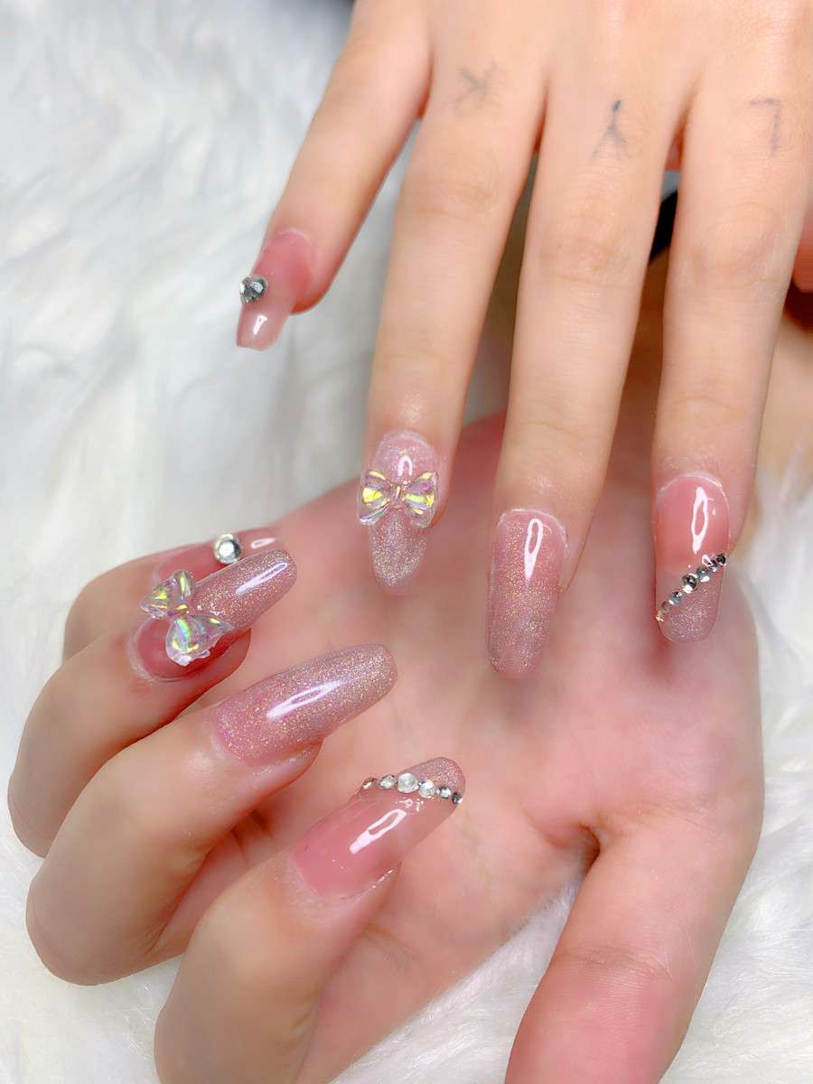 南寧美甲款式造型班作品---水晶蝴蝶結(jié)美甲