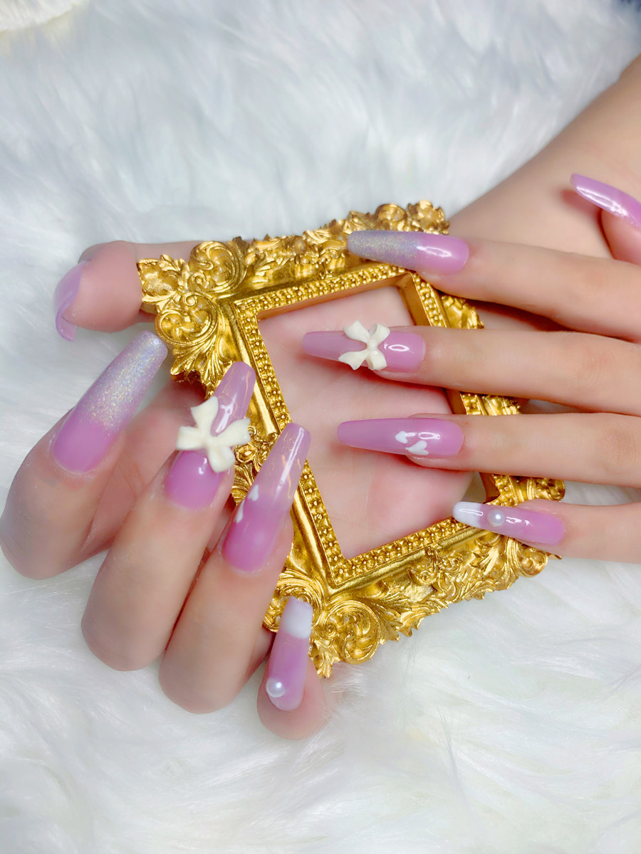 南寧美甲進(jìn)修作品---少女蝴蝶結(jié)美甲