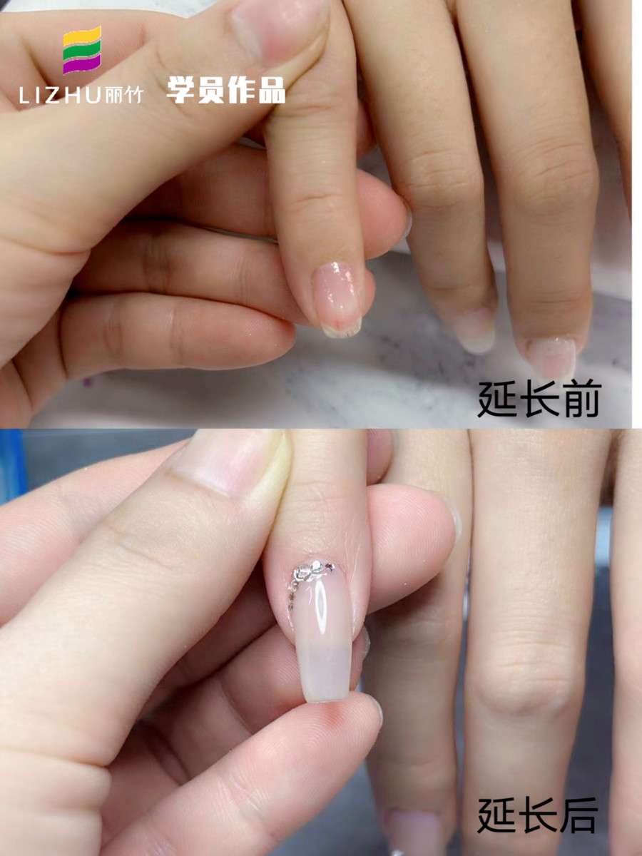 麗竹美甲學(xué)校學(xué)員們-光療延長美甲前后對比圖