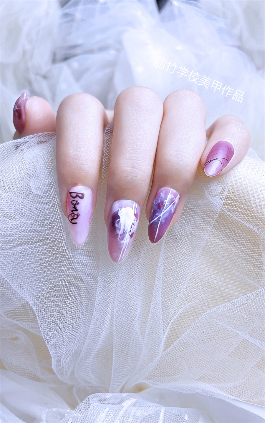紫色系美甲,南寧學(xué)美甲技術(shù)學(xué)員作品