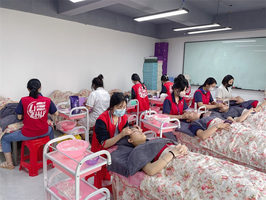美容師考證、廣西美容師資格證書考點:隨著廣西美容培訓-麗竹學校《美容師》職業(yè)資格證正式考核的時間越來越近,近日,學校再次組織參與考試的美容,化-妝,美甲專業(yè)的學員們舉行了考試前的美容手法實踐模擬。