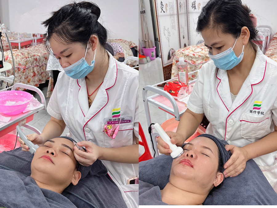 廣西美容培訓(xùn)儀器---學(xué)員操作儀器進(jìn)行面部管理