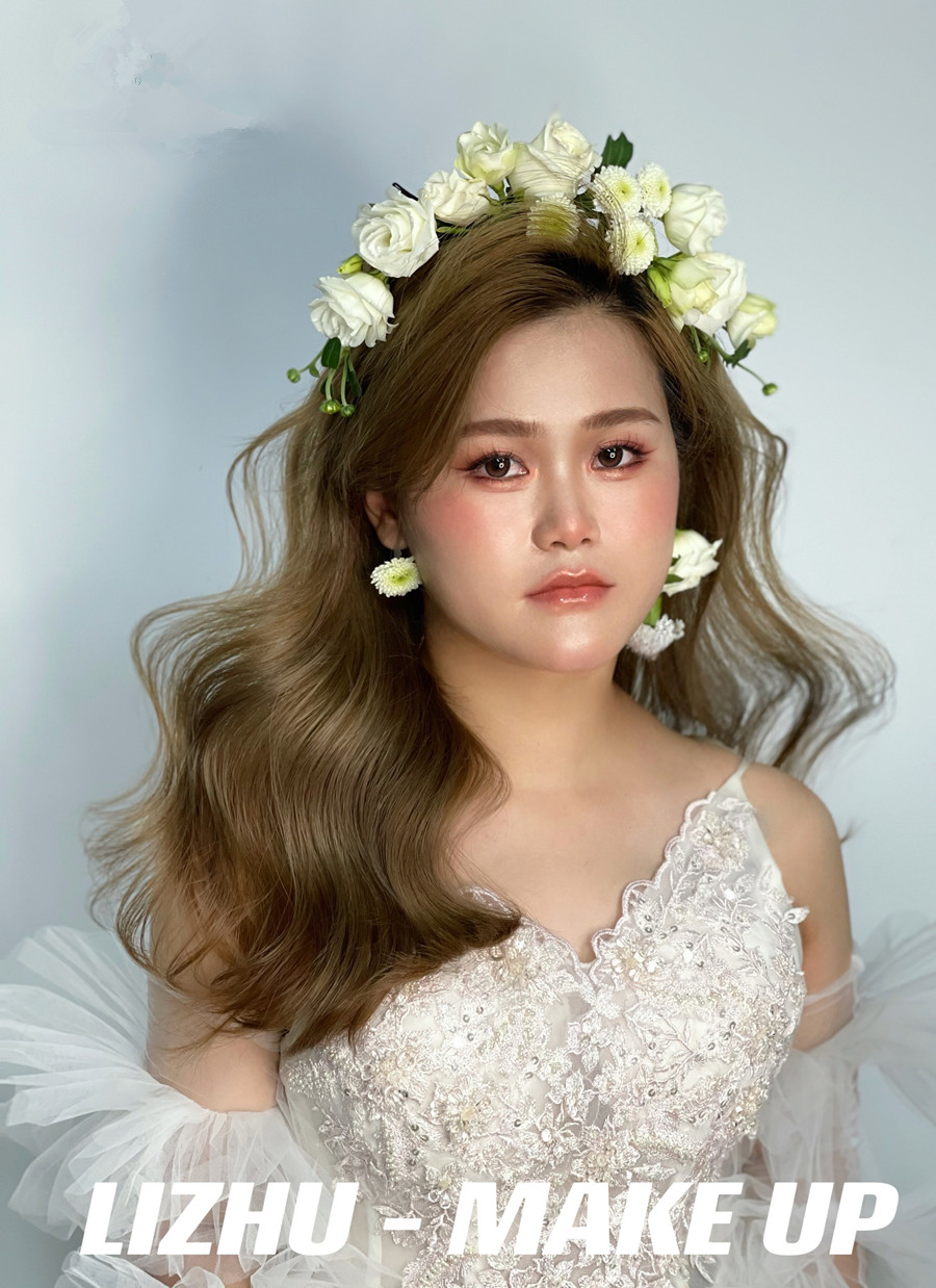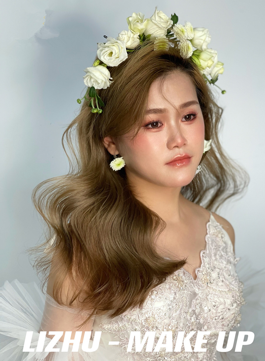 鮮花披發(fā)新娘造型,南寧新娘化妝進修作品