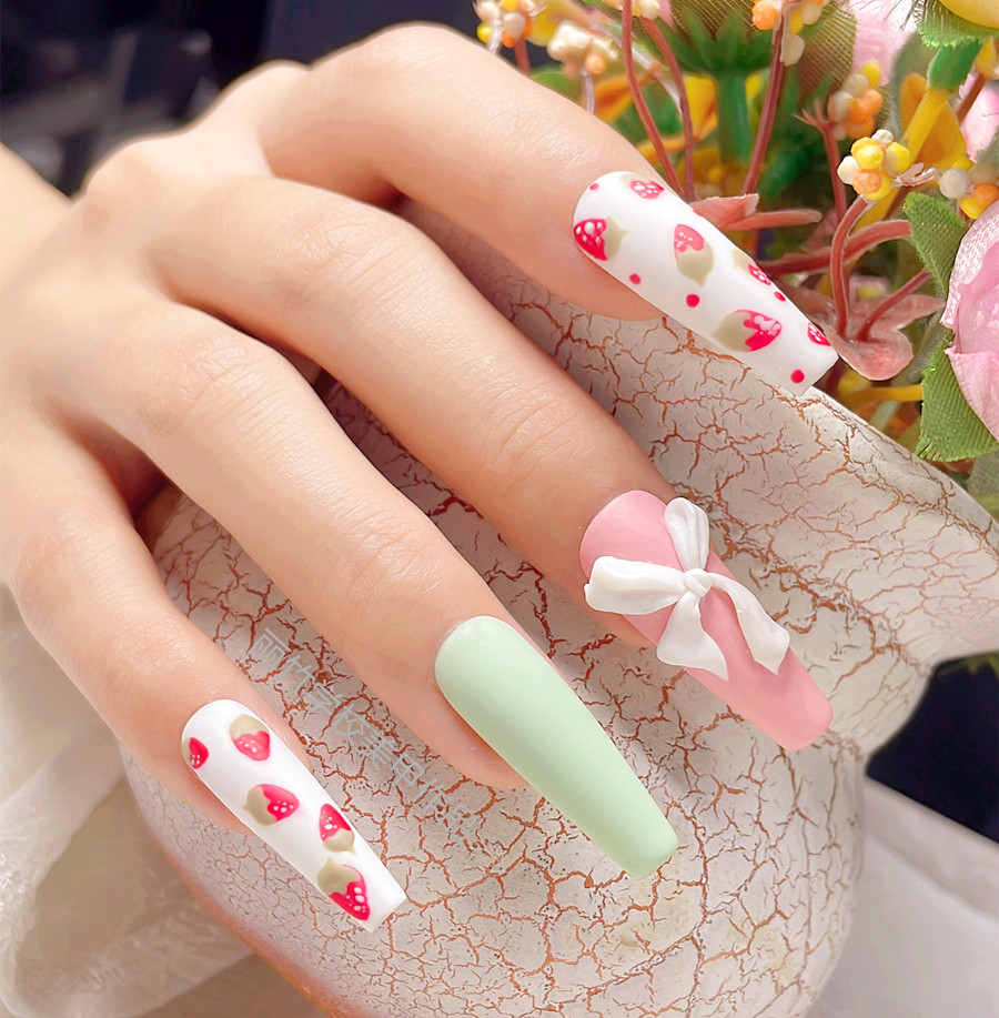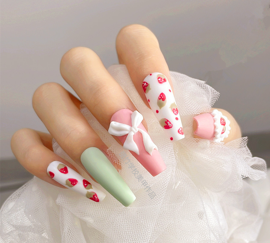 南寧美甲培訓哪里比較好?麗竹美甲培訓用作品證明:草莓美甲(一)