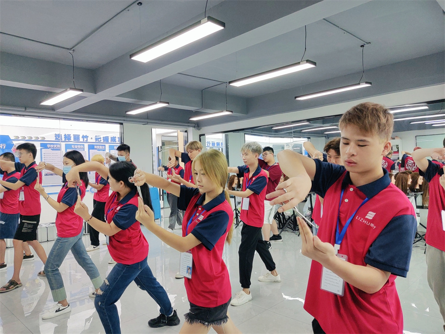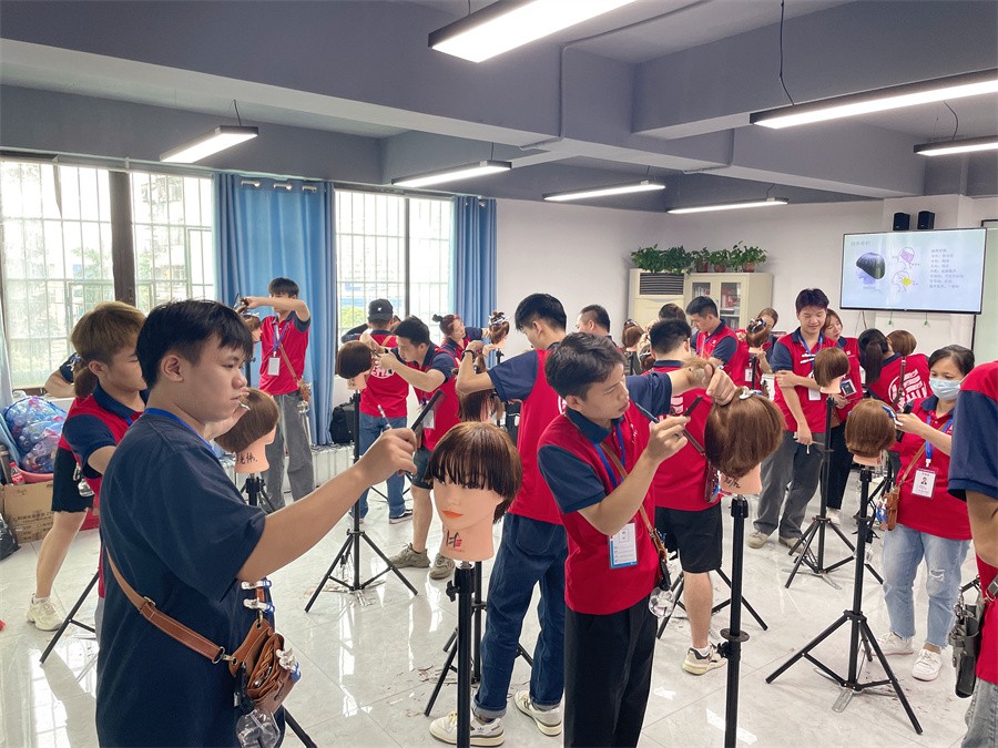 南寧美發(fā)基礎(chǔ)培訓(xùn),美發(fā)基礎(chǔ)班學(xué)員練習(xí)剪發(fā)站姿,修剪動(dòng)作