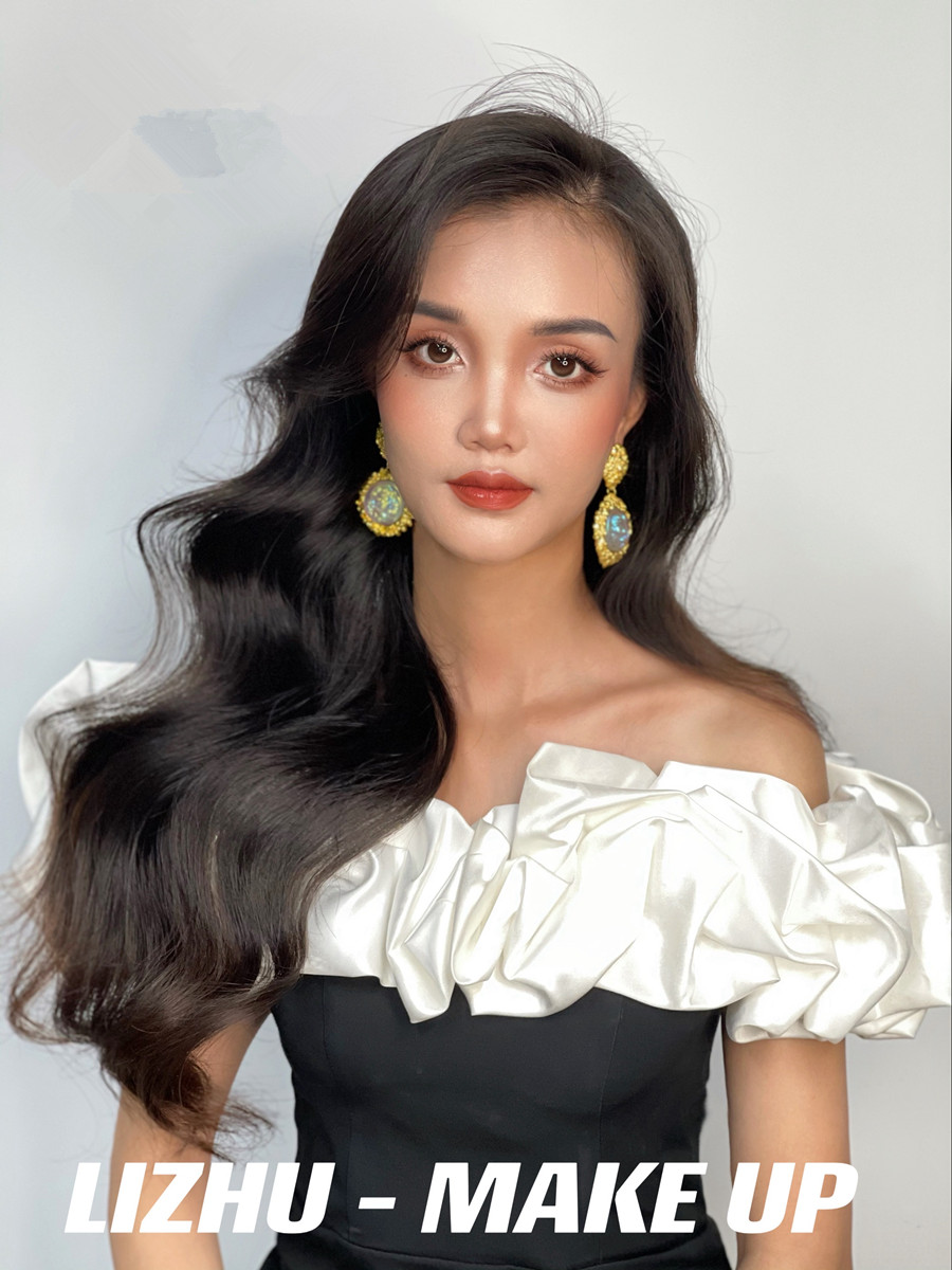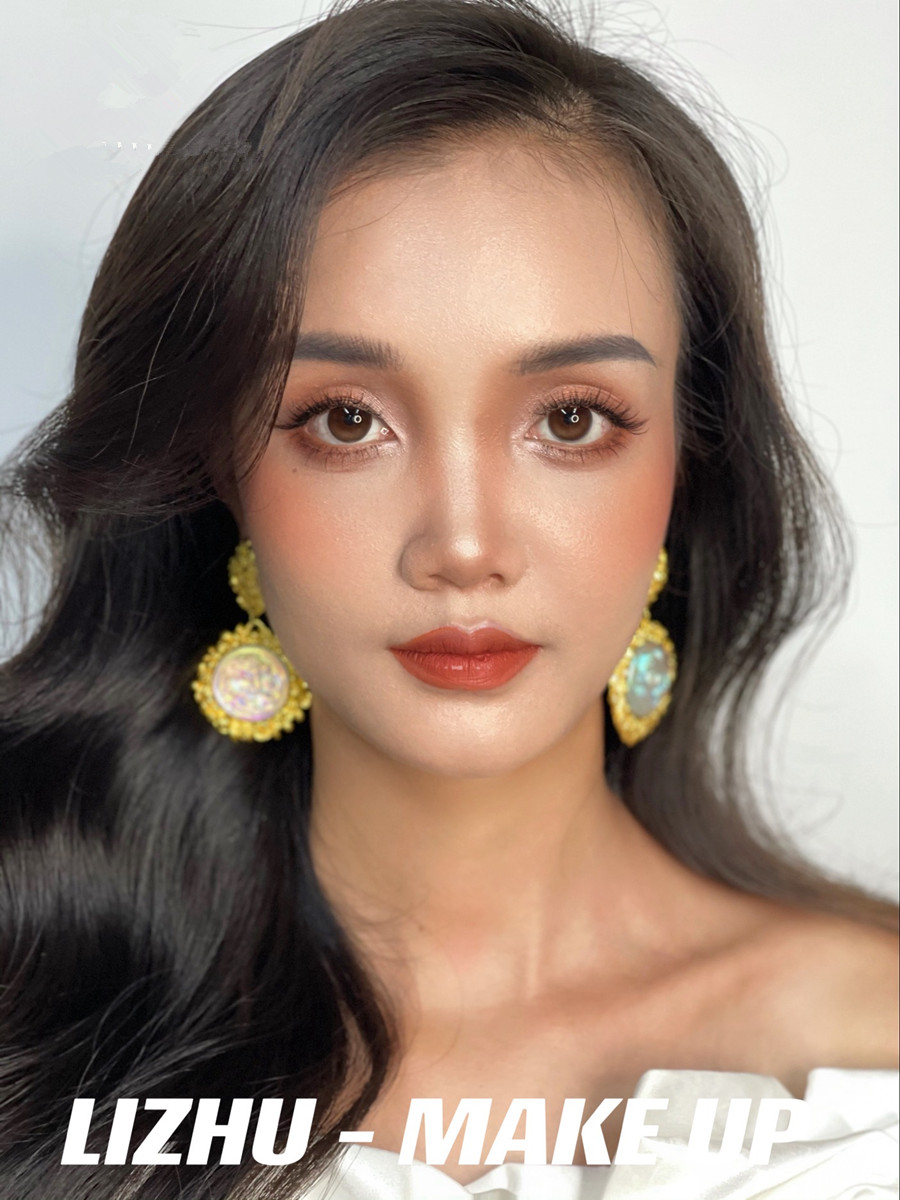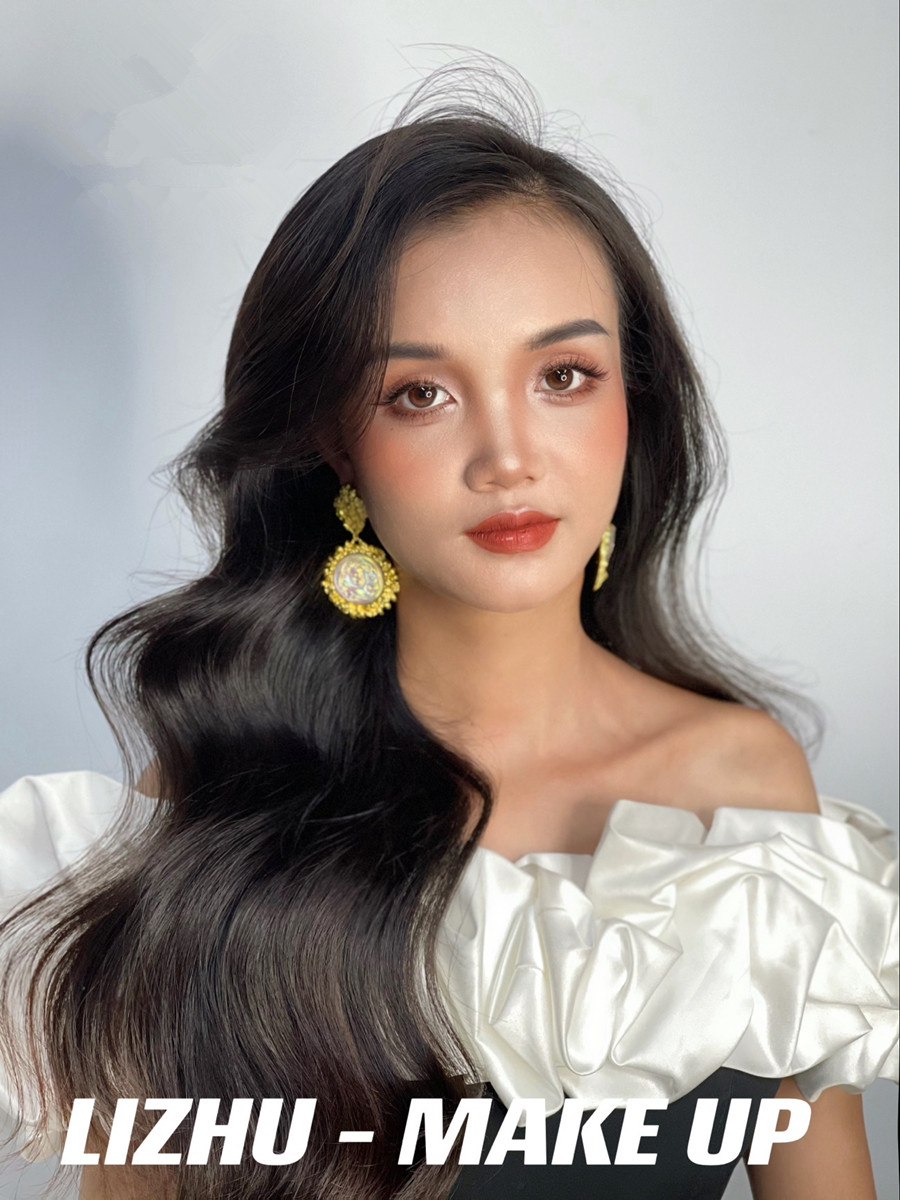 腮紅和唇妝采用同色系,起到承上啟下相互呼應(yīng)的作用。發(fā)型采用靈動(dòng)流暢的披發(fā)造型,使得整個(gè)妝面的打造更具有魅惑特點(diǎn),彰顯出了濃顏系的泰式妝容。
