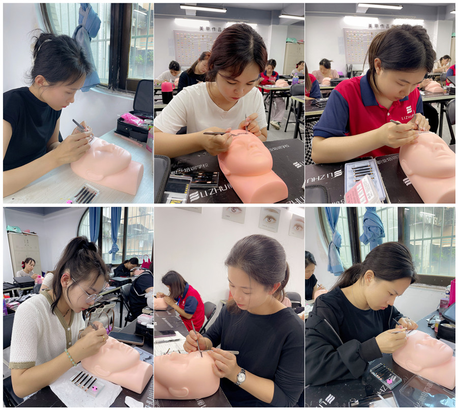 廣西美睫培訓(xùn)課件、廣西美睫師:廣西南寧美睫學(xué)校-廣西美睫培訓(xùn)班麗竹學(xué)校國(guó)際美睫進(jìn)修班的同學(xué)們學(xué)習(xí)完美睫理論課程內(nèi)容,現(xiàn)在已經(jīng)了在假頭模嫁接睫毛的訓(xùn)練。相信如此認(rèn)真練習(xí)的同學(xué),定能在真人實(shí)操考核階段順利通過(guò)!讓我們共同待同學(xué)們真人實(shí)操的美睫作品吧!