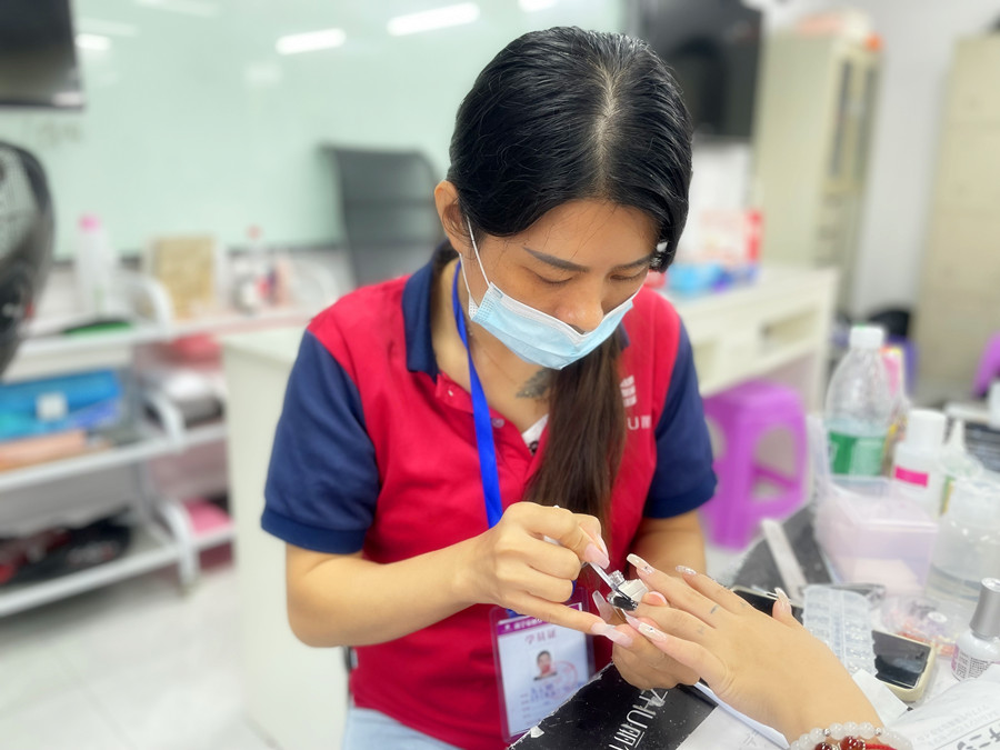 麗竹美甲培訓(xùn)同學(xué)們進(jìn)行真人實(shí)操
