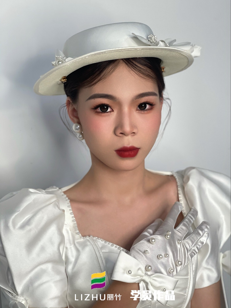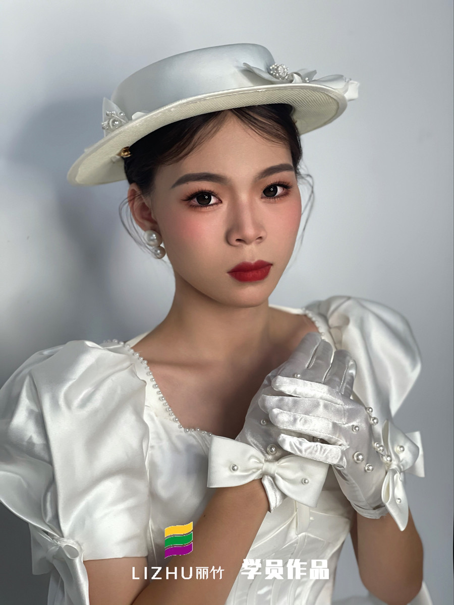 南寧彩妝造型學(xué)習(xí)、南寧新娘跟妝(麗竹彩妝造型)學(xué)員作品---禮帽復(fù)古新娘:大氣簡潔束起的高發(fā)髻,佩戴珍珠絲綢白色禮帽,腮紅與唇色的色彩碰撞,詮釋法式的浪漫與優(yōu)雅。不管你是在職化妝師,還是想零基礎(chǔ)學(xué)新娘妝的小白,都建議你趁著南寧新娘造型學(xué)校-麗竹化妝學(xué)校進(jìn)行“2025春季春季學(xué)位搶訂活動(dòng)”活動(dòng)之際,狠狠薅一波羊毛!