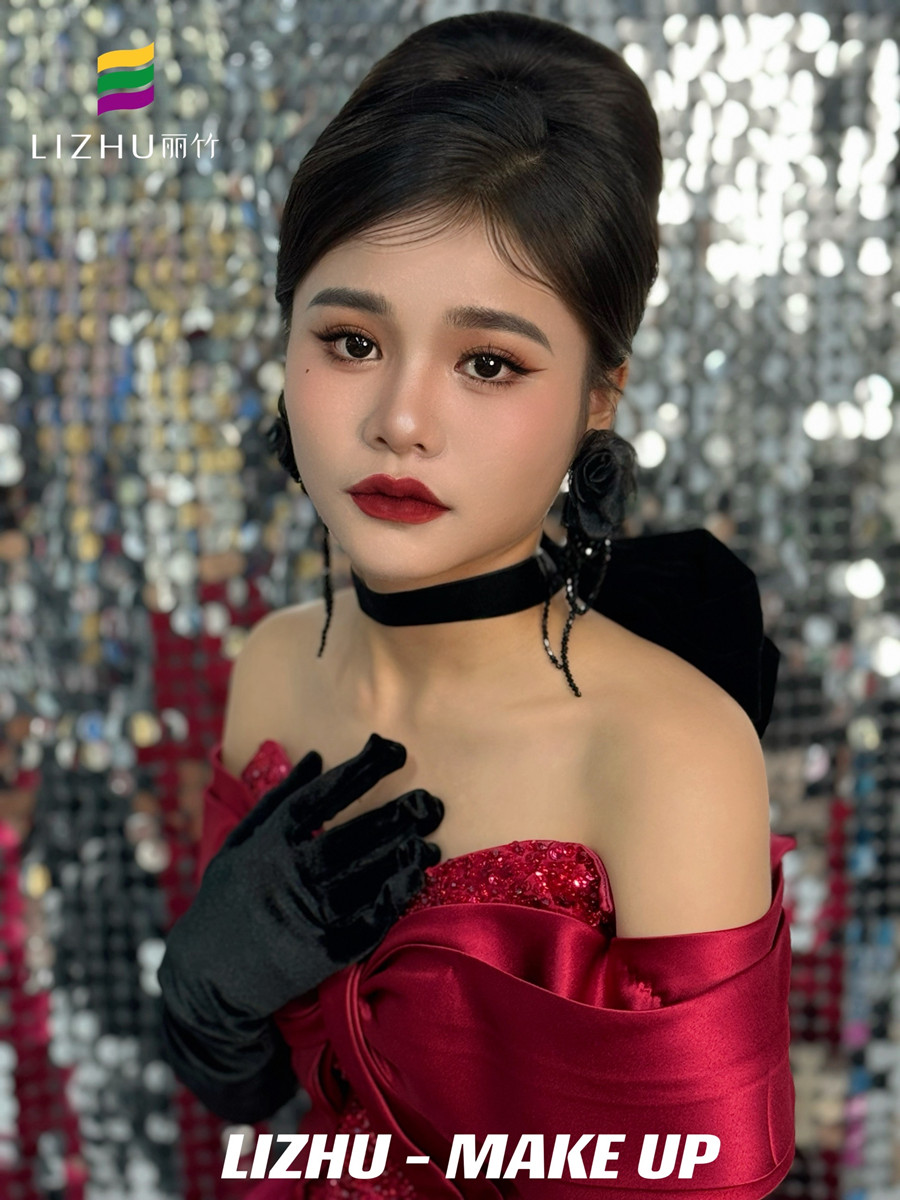 南寧化妝美業(yè)學(xué)習(xí)、南寧化妝彩妝(麗竹化妝彩妝培訓(xùn))作品---復(fù)古年會造型:明媚動人氣質(zhì)妝容,簡約大氣復(fù)古赫本發(fā)型,佩戴夸張黑色花朵配飾,身穿酒紅色亮片抹胸禮服,仿佛置身于年會中的紅玫瑰。想知道南寧化妝學(xué)校哪家時尚?或是想知道南寧學(xué)化妝學(xué)費便宜的是哪家?歡迎大家趁著麗竹學(xué)校正在進(jìn)行招生優(yōu)惠活動之際,關(guān)注麗竹學(xué)校彩妝專業(yè),...