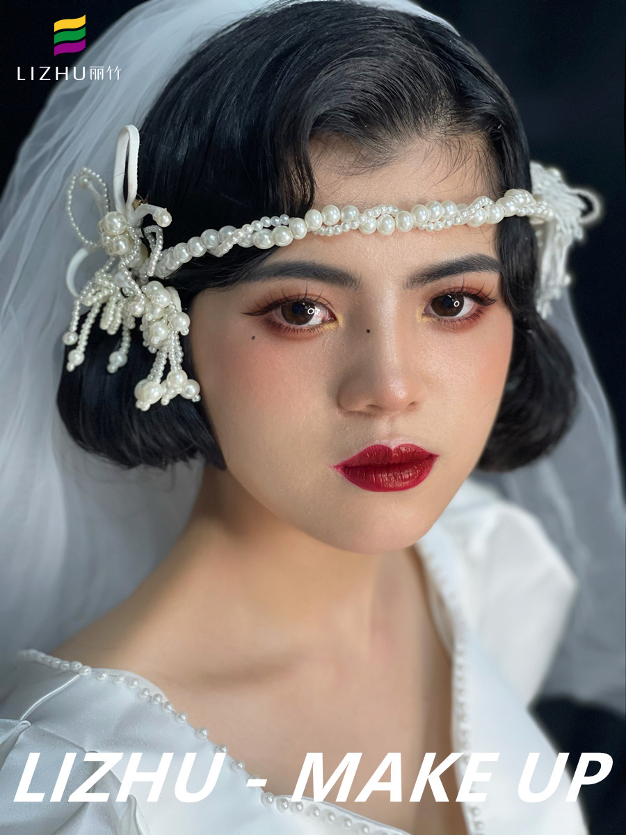南寧化妝寫(xiě)真攝影、南寧化妝彩妝(麗竹化妝造型)作品---法式復(fù)古造型:極具復(fù)浪漫的法式波紋短發(fā),自然野生眉與精致妝容,前額佩戴珍珠項(xiàng)鏈飾品,瞬間點(diǎn)亮整個(gè)復(fù)古造型。如果你想在南寧學(xué)化妝拍照,想知道南寧化妝在哪里學(xué)?歡迎大家趁著南寧影樓化妝攝影學(xué)校(麗竹學(xué)校)正在進(jìn)行春季招生報(bào)名優(yōu)惠活動(dòng),趕緊聯(lián)系我們報(bào)名吧!