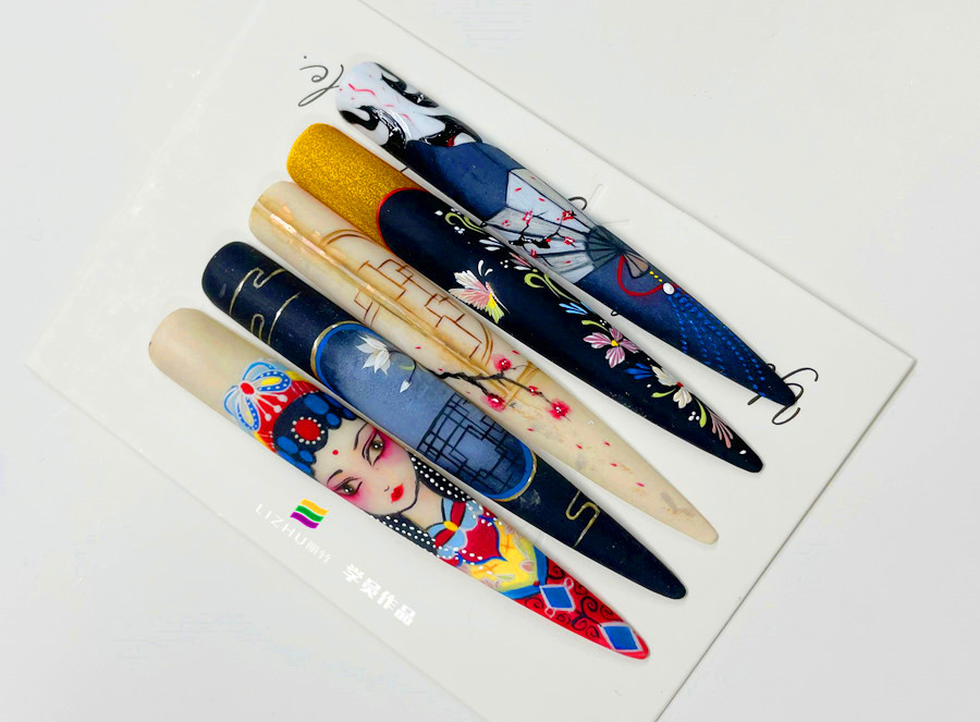 南寧美甲造型培訓學員-彩繪美甲作品---《國風花旦》