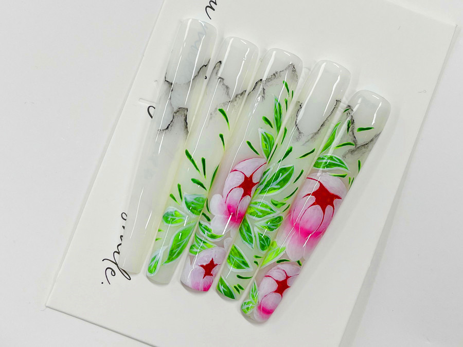 廣西美甲造型培訓學員彩繪美甲作品---《上春山》