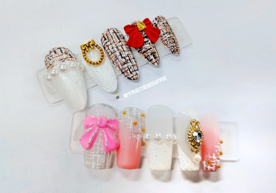 作為南寧美甲學徒必須款式,和其他小香風打造的風格不同,小香風美甲,區(qū)別于衣服使用的粗花呢面料,當這種圖案運用到甲片上時則會比較細碎,以十字架疊加為主,總給人一種既特別又高貴的感覺。