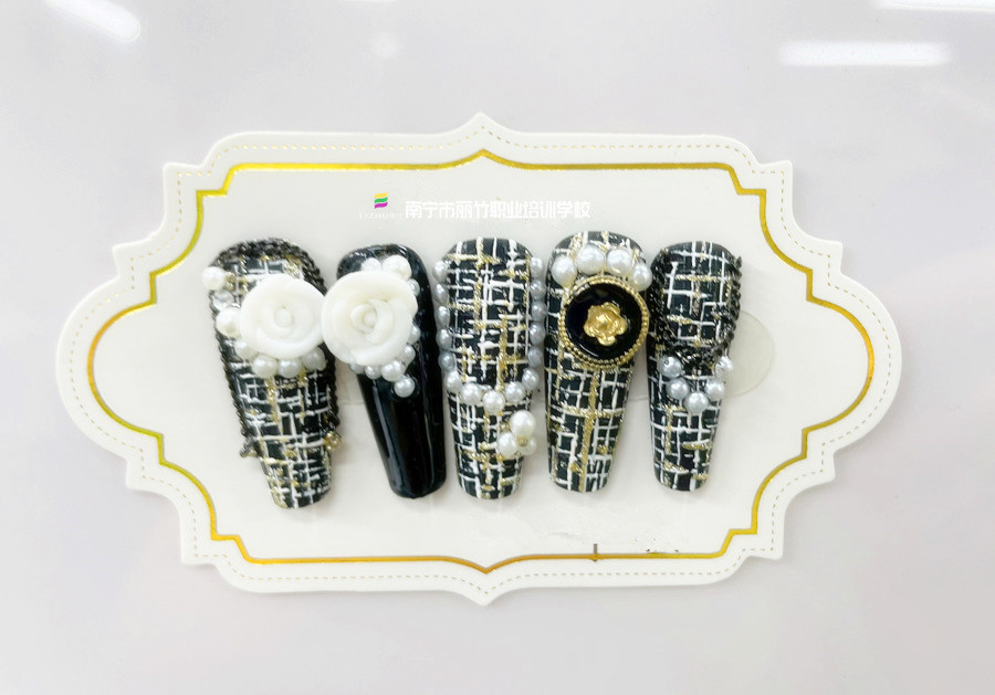 南寧美甲課堂、南寧學美甲款式:小香風聞名于世,主要來源于全球奢派香奈兒的影響力。香奈兒以山茶花和十字疊加拼起的格紋為標志,而作為優(yōu)雅代名詞的香奈兒起打造出來的設(shè)計風格,也被人們熱情稱為“小香風”。這種風格在各個領(lǐng)域都一路花開,美甲行業(yè)也不例外。
