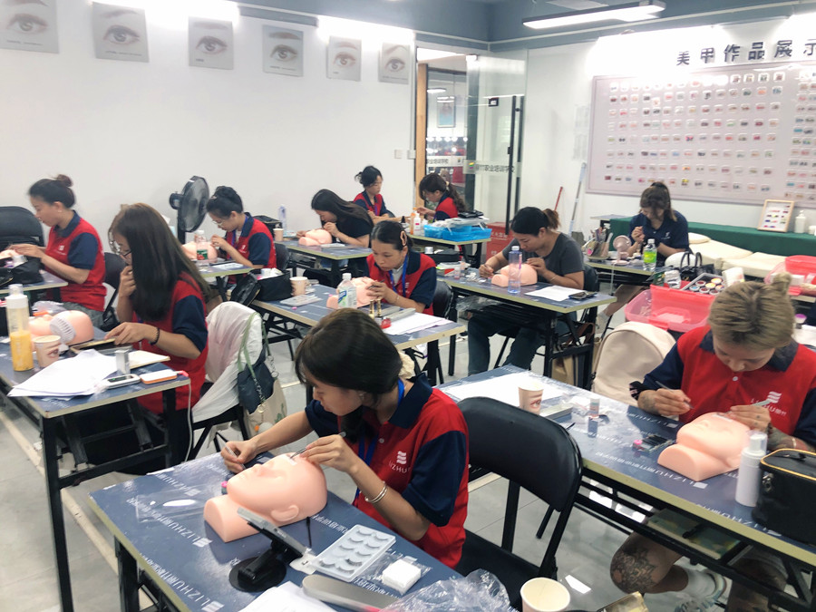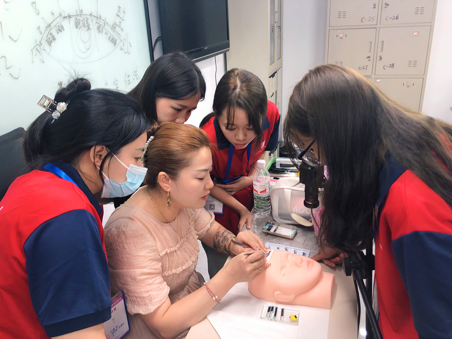 很多人以為仿皮只會在紋繡學習中運用到,其實在學美睫的時候也需要用到仿皮。南寧美睫培訓班(麗竹美睫學校)的課堂上,學員們通過用仿皮練習的方式,便可以將所學知識快速進行實踐并提高嫁接技術,遇到不懂的地方也可以向老師求解,解決當堂隨時能遇到的技術問題。