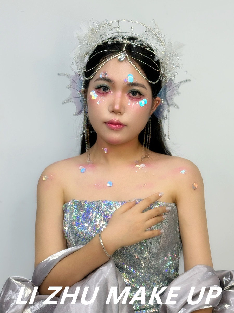 南寧人物化妝培訓(xùn)、南寧化妝寫真造型(麗竹化妝造型)作品---人魚精靈公主造型。沒有經(jīng)驗,所以想知道哪里可以進行化妝造型培訓(xùn)零基礎(chǔ)?想知道南寧學(xué)化妝哪里有實力?真心建議你到南寧化妝形象造型學(xué)校(麗竹學(xué)校)來提前預(yù)約參觀試聽的名額吧!