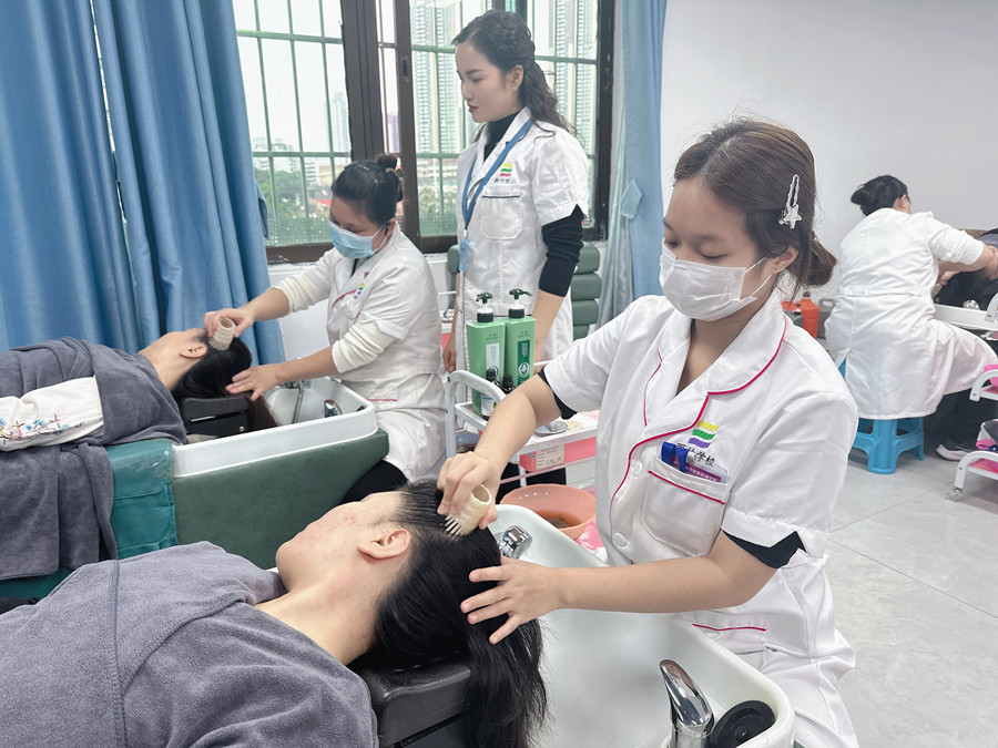 廣西頭療洗頭、廣西頭療師:當你感到疲憊的時候,如果能夠在專業(yè)美容頭療師下進行一次頭療養(yǎng)發(fā)放松項目,不僅可以讓你的身體和頭部得到放松,還能讓你瞬間精神十足。那么,專業(yè)的頭療培訓都有哪些流程呢?如果你也好奇,不如來看看廣西頭療專業(yè)技術(shù)培訓實操花絮進行了解吧!