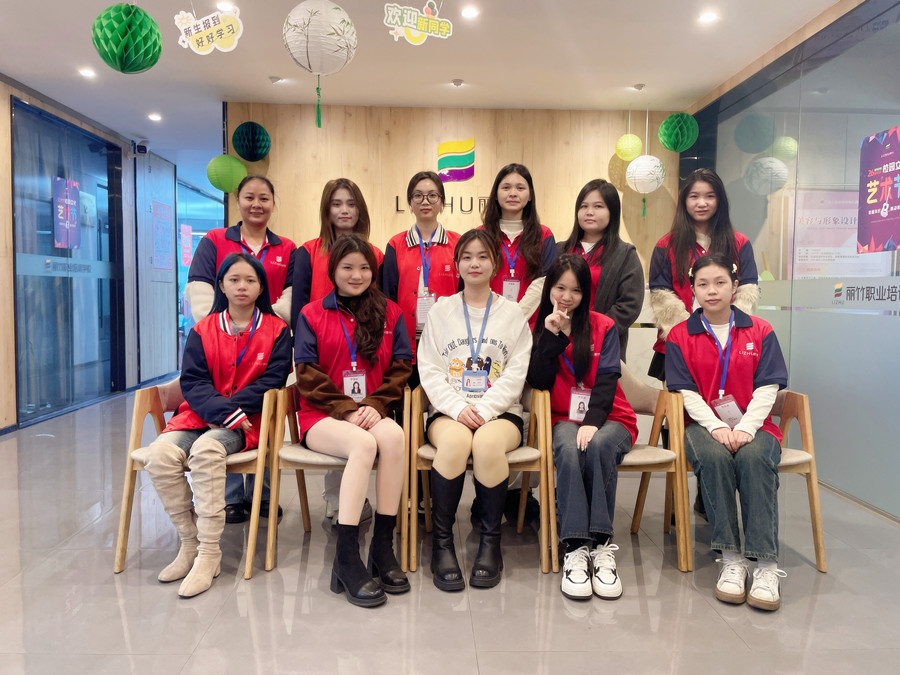 美甲畢業(yè)學(xué)員與部分領(lǐng)導(dǎo)老師合影