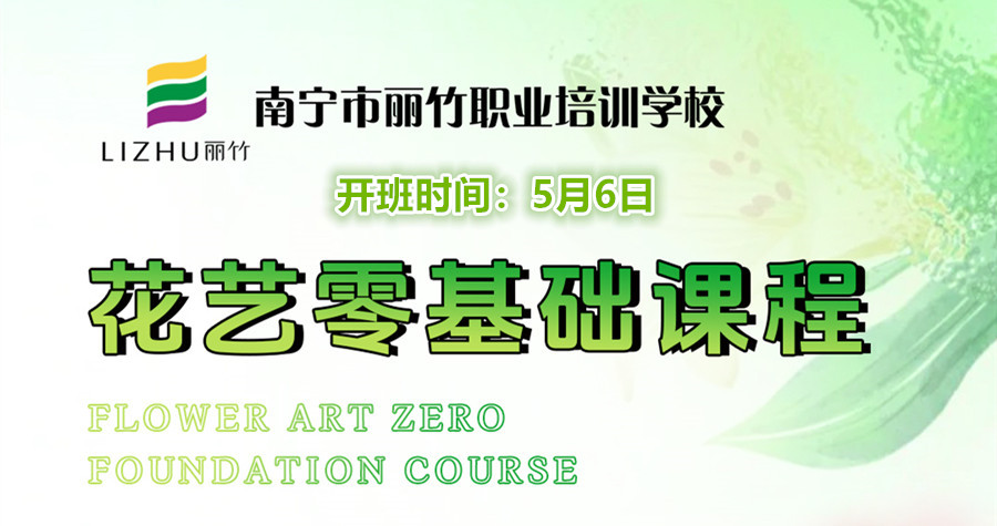 除了綠植的相關(guān)知識(shí)外,如果你還想在廣西學(xué)花藝,但是不知道廣西花藝學(xué)校有哪些?麗竹學(xué)校《花藝零基礎(chǔ)課程》新一期課程將在5月6日開班,教學(xué)內(nèi)容傳統(tǒng)技術(shù)與流行技巧相結(jié)合,帶你暢游浪漫花海。
